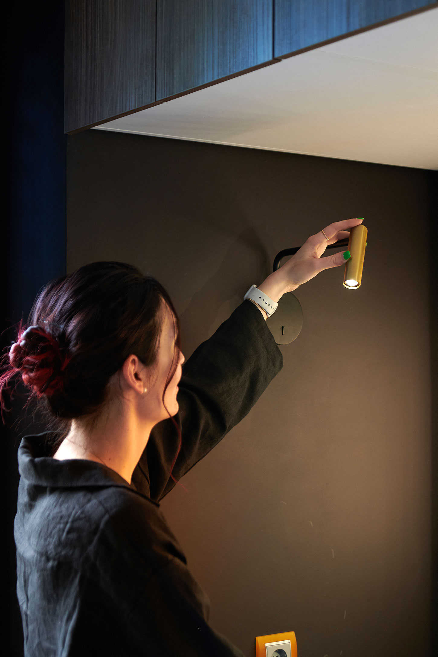 Стены и потолок комнаты выкрашены глубокоматовой и потолочной краской Mallers. Контрастные оттенки выбраны по вееру Mallers: