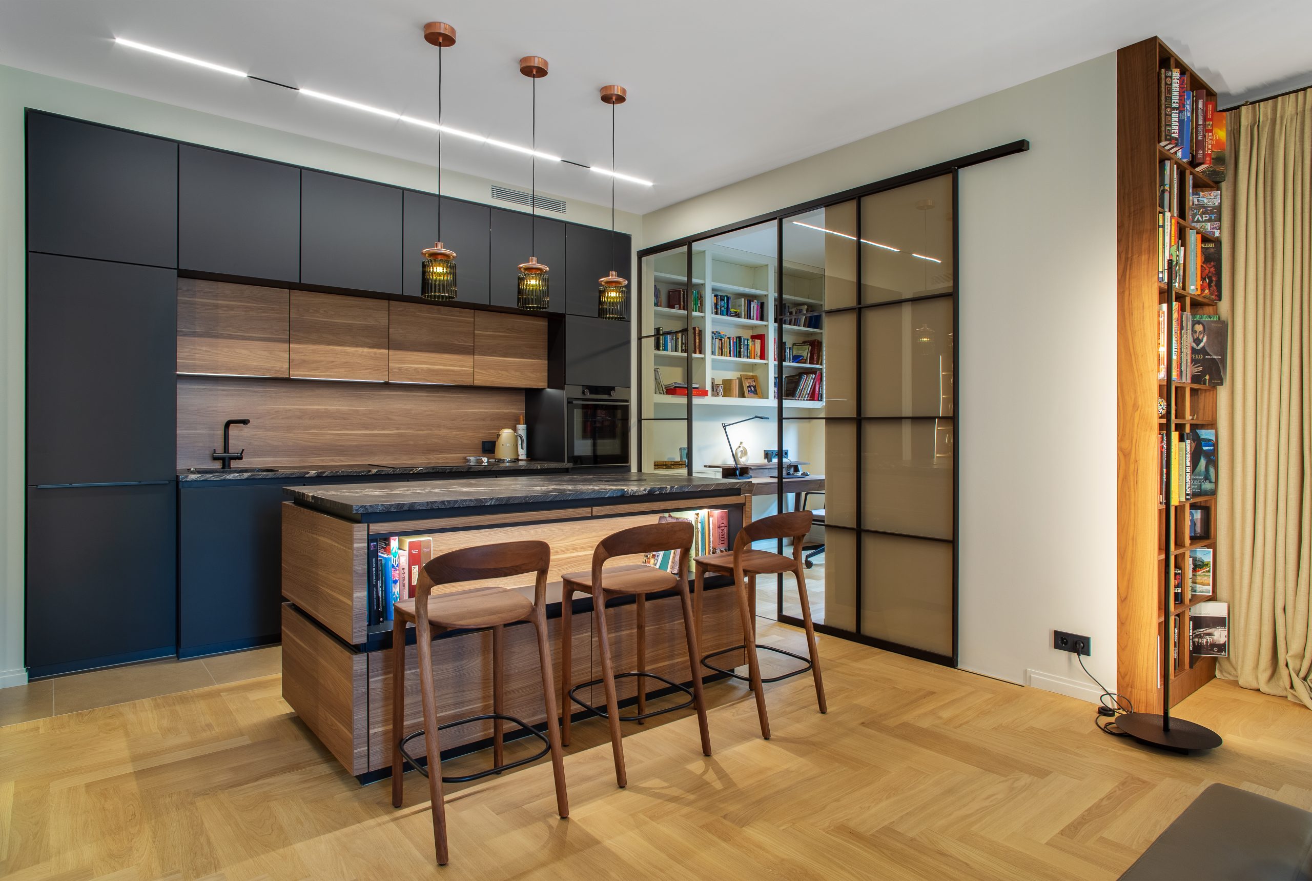 Материалы, которые подобрали в Ампир Декор прекрасно поддержали интерьерные решения этого проекта: