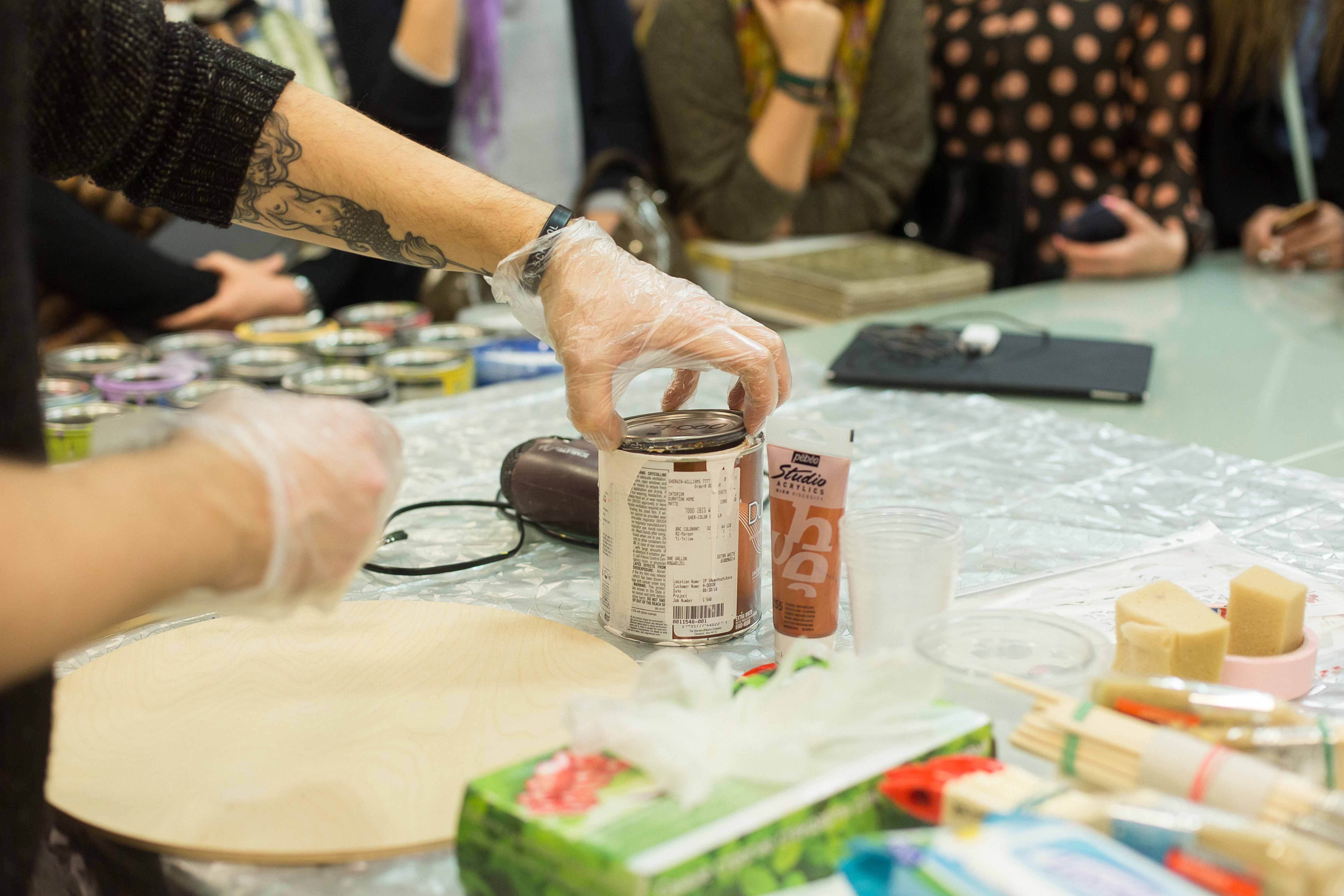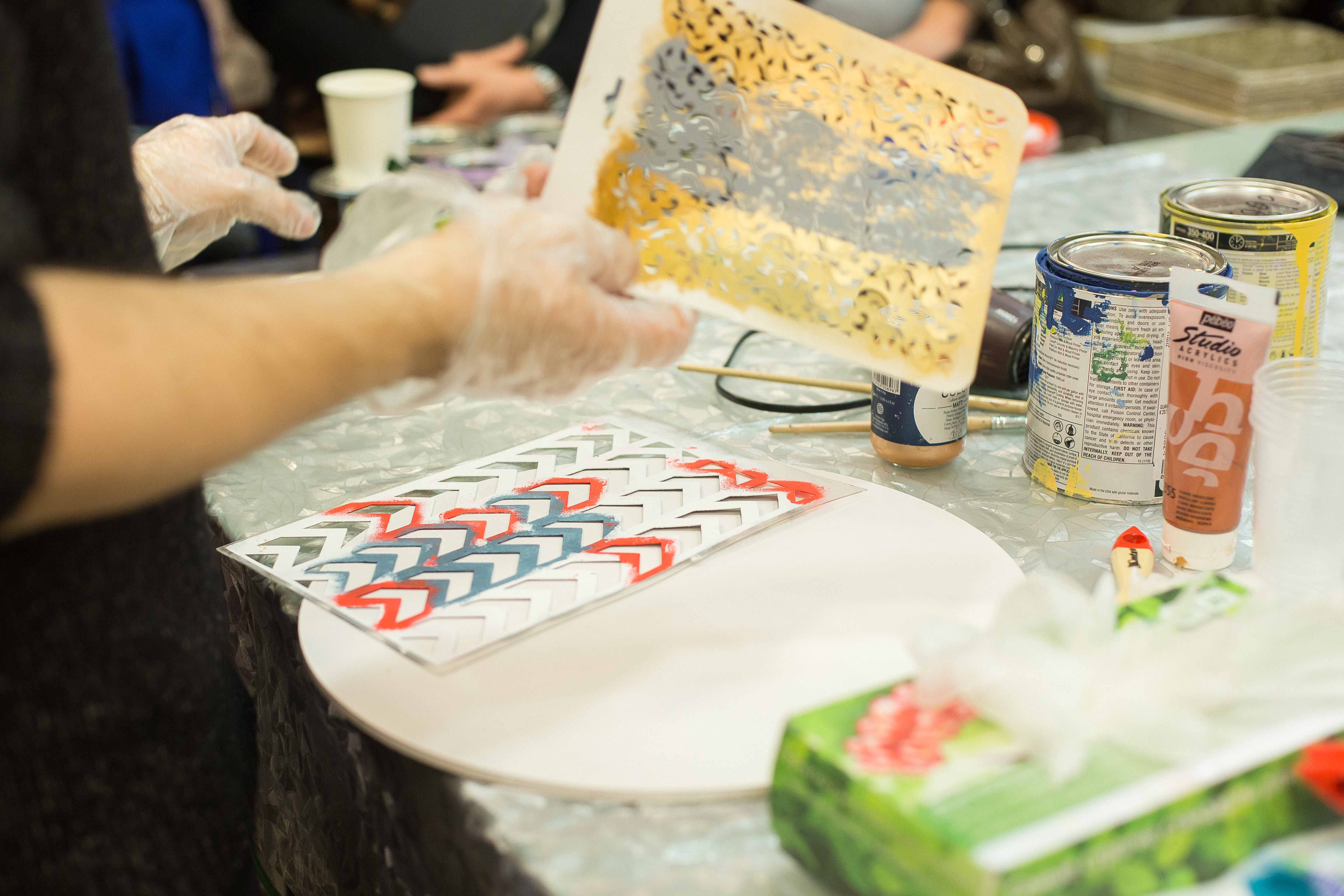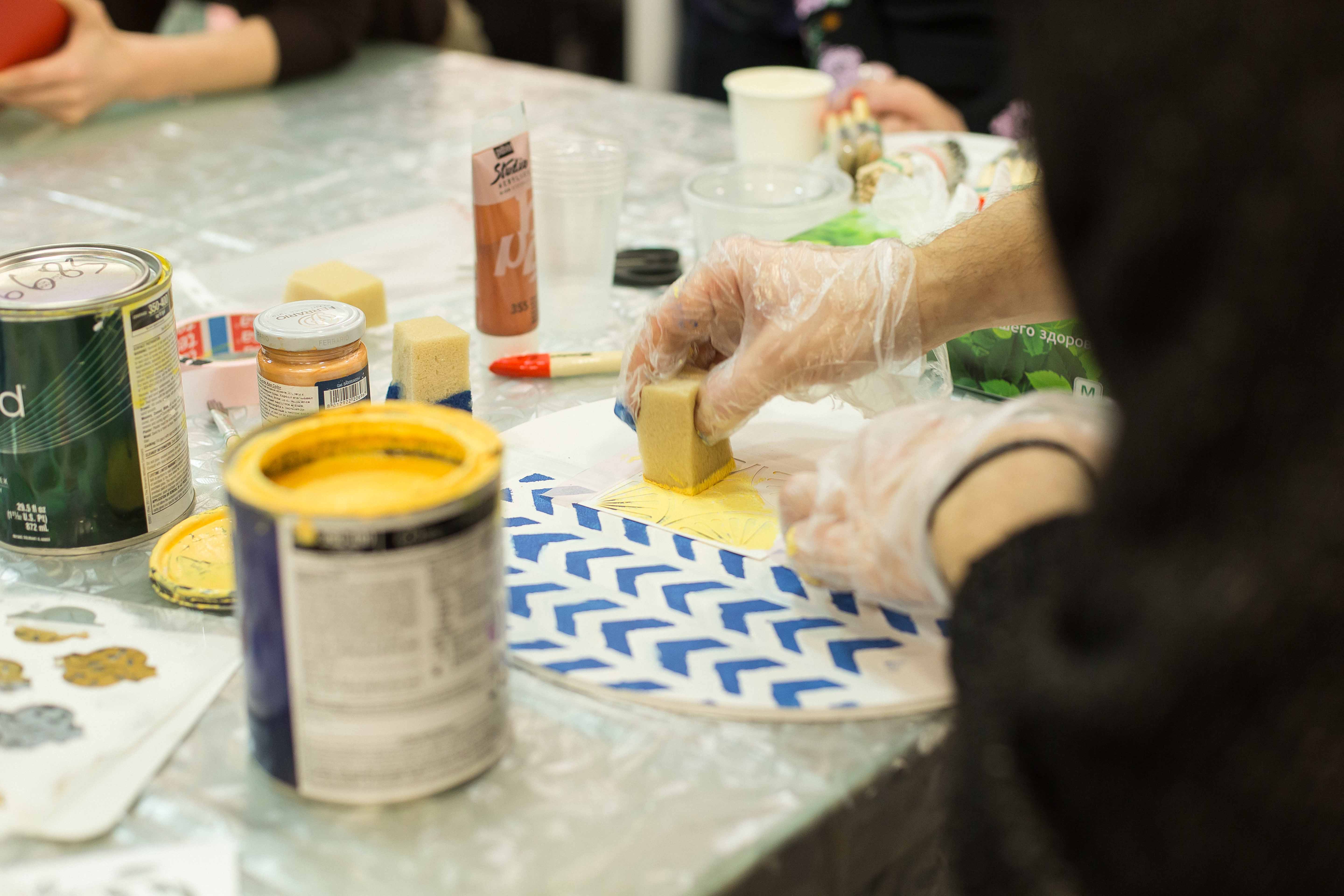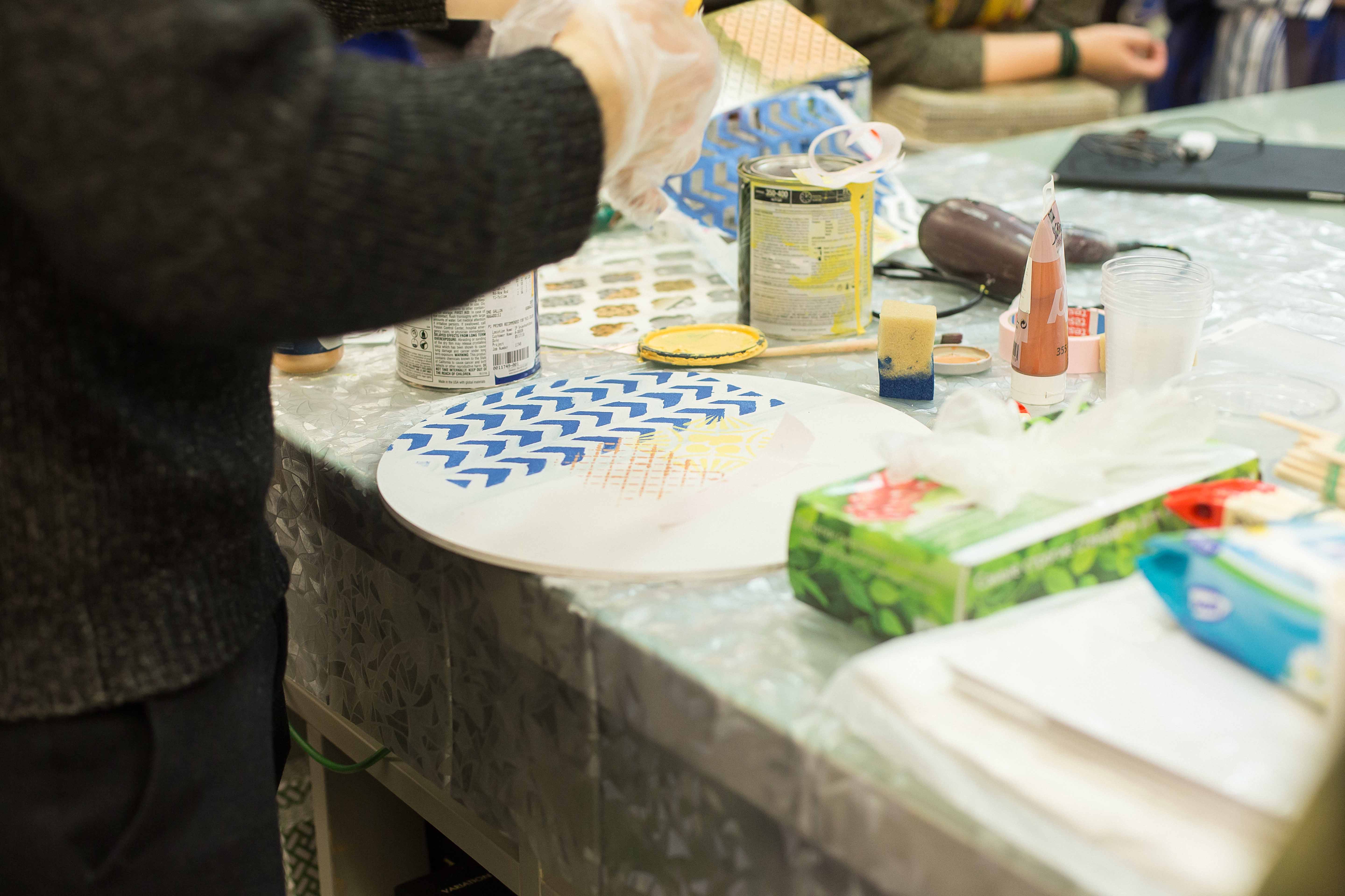 В практической части встречи Александр продемонстрировал различные декоративные техники, включающие работу с фактурами и цветовой палитрой. Гости с интересом наблюдали за процессом и задавали вопросы.