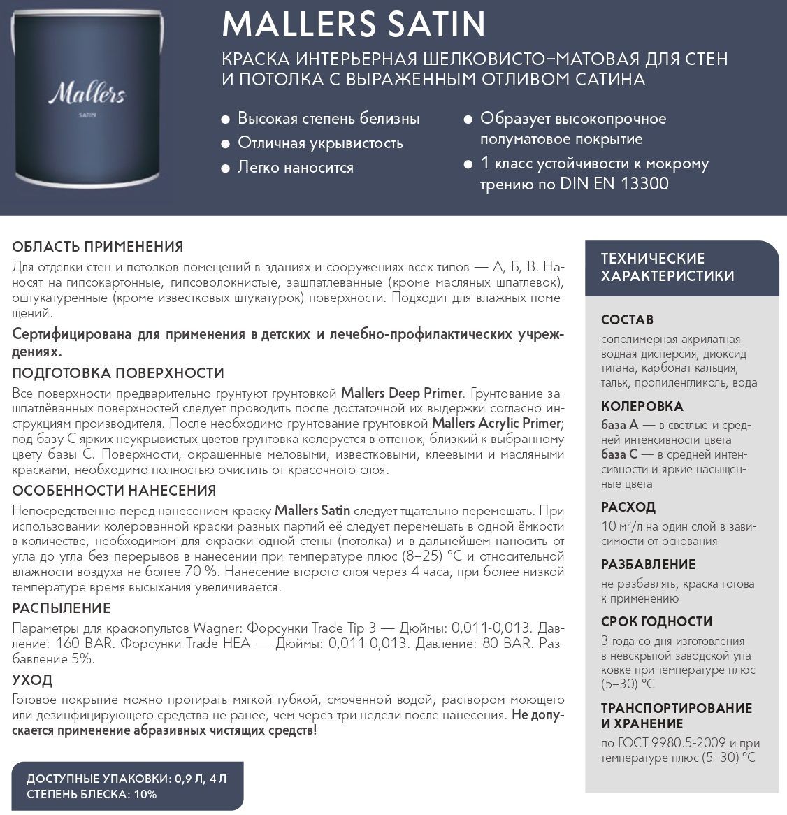 — краска интерьерная шелковисто–матовая для стен и потолка с выраженным эффектом сатина;