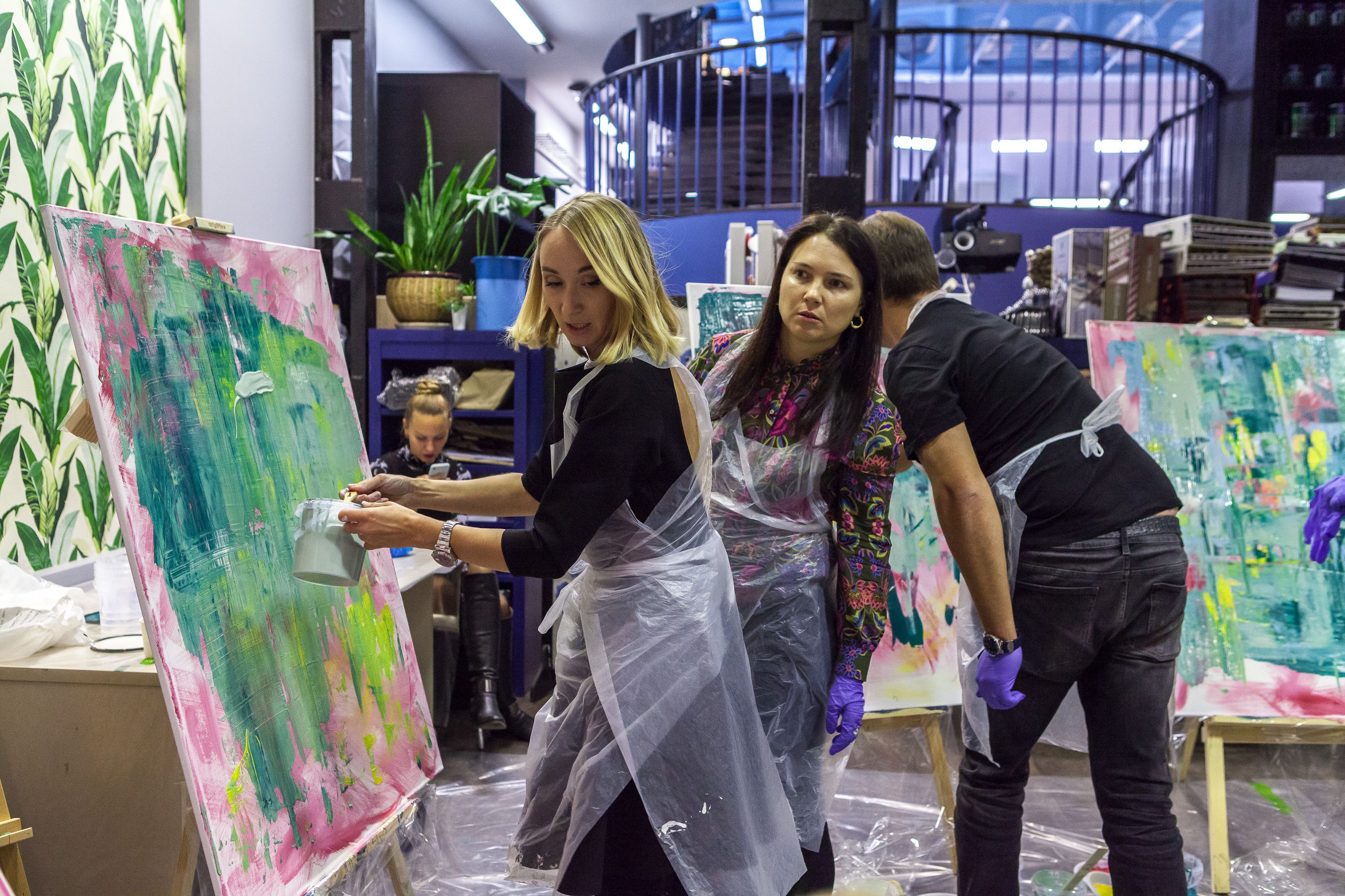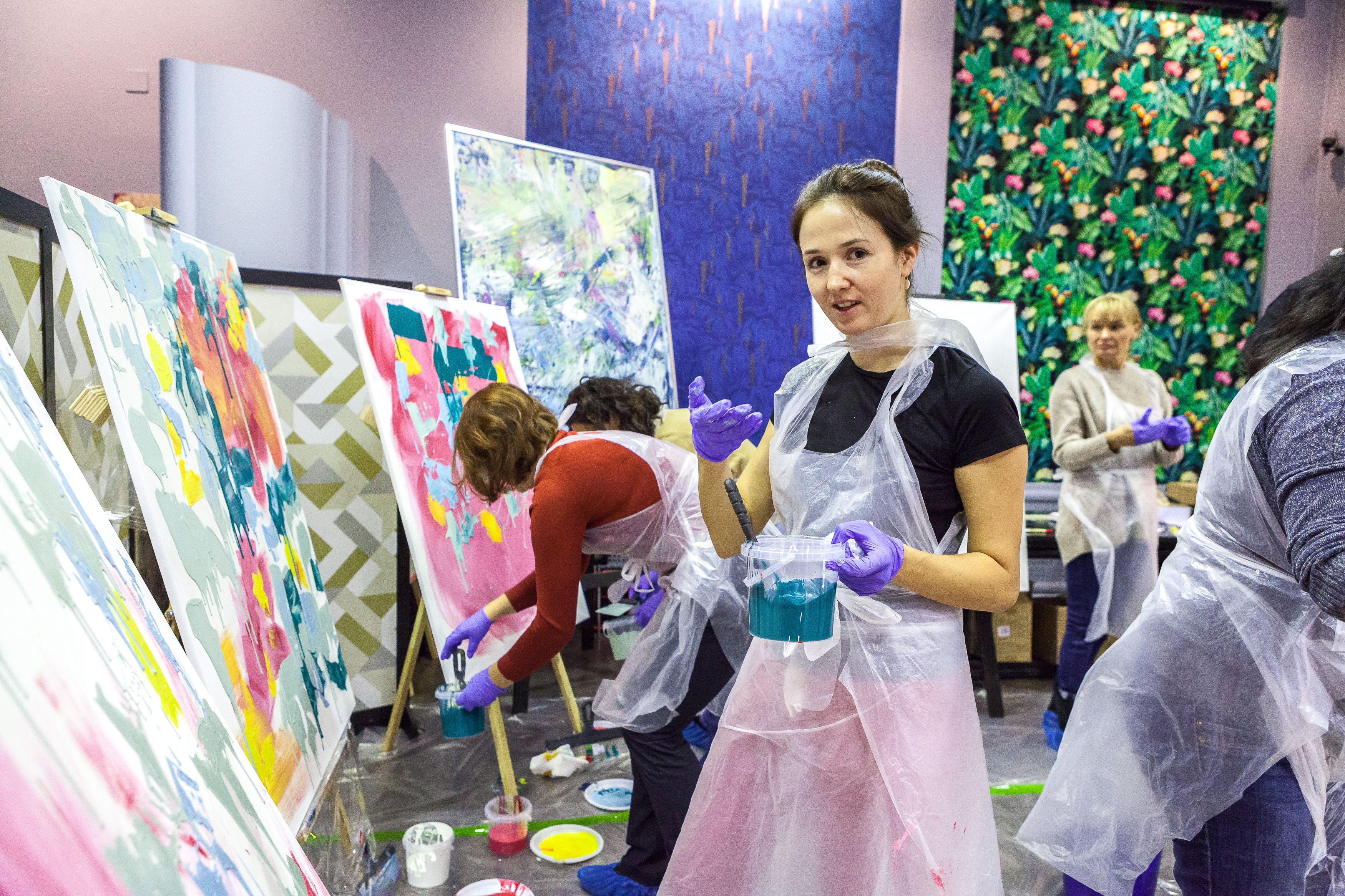 Серия мастер-классов по крупноформатной абстрактной живописи прошла в Центре Дизайна Мануфактура 5 в ноябре и декабре. Умение чувствовать цвет и передавать с его помощью эмоции — редкий дар. Однако атмосфера креативной импровизации способна открывать неожиданные таланты. Это проверили на себе гости нашего лектория!