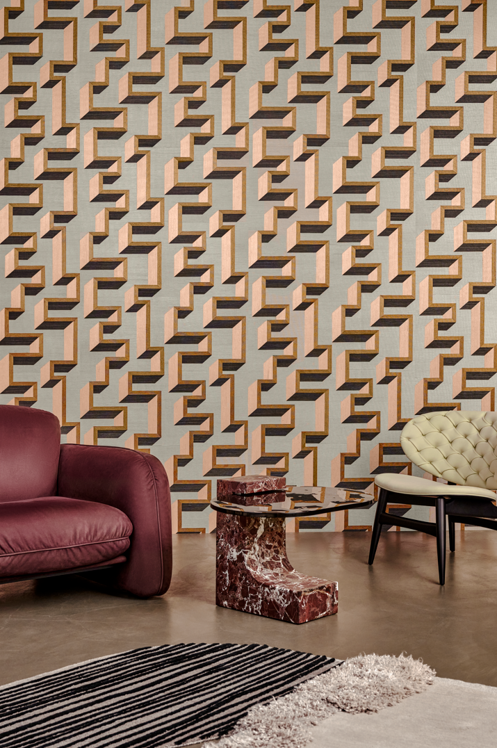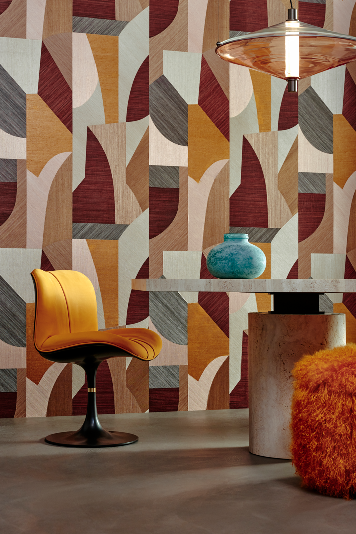 Основой метражной коллекции обоев Marqueterie бренда Arte стала сизаль, кусочки которой складываются в уникальные рисунки. Используемые для этого различные направления плетения и цвета подчеркивают необычную глубину и текстуру дизайнов.
