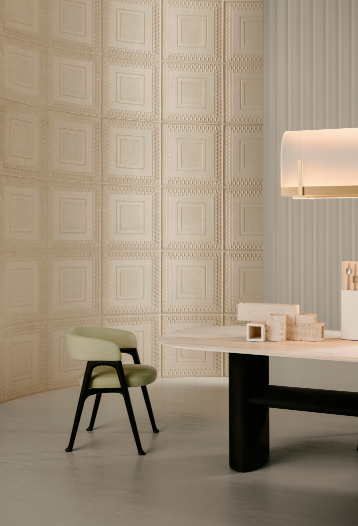 Декоративная лепнина на протяжении веков украшает дворцы и храмы, театры, дома и усадьбы всех стилей. Именно она послужила вдохновением для новой коллекции обоев Objet. Нежные на ощупь, замшевые обои придадут интерьеру текстуру и рельеф и улучшат акустику помещения.