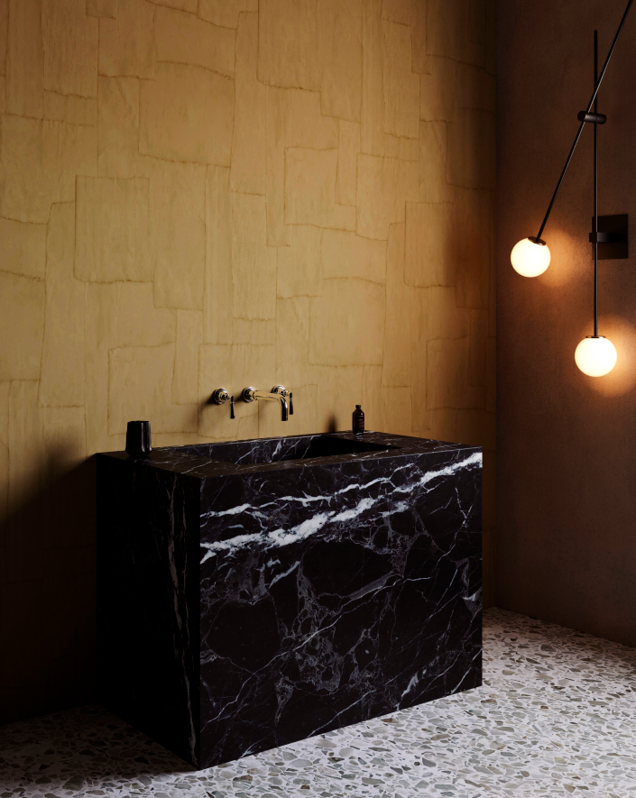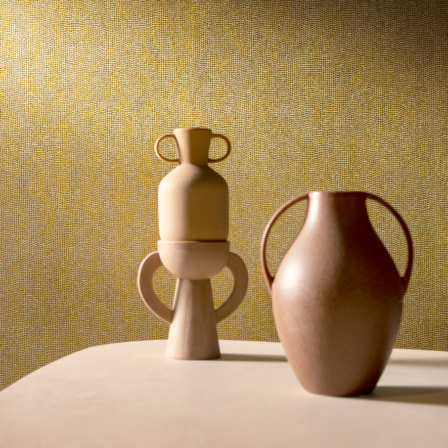 Les Thermes, иллюстрирующая богатую древнегреческую и древнеримскую историю, где важную роль играли скульптура и архитектура. Значимой являлась так называемая «культура термальных ванн», которая отражалась в искусстве: изделиях из мозаики, ручной росписи. Имитации декоративной штукатурки, мелких кусочков камня, стекла, керамики и блеск фольги переносят в эпоху того времени.