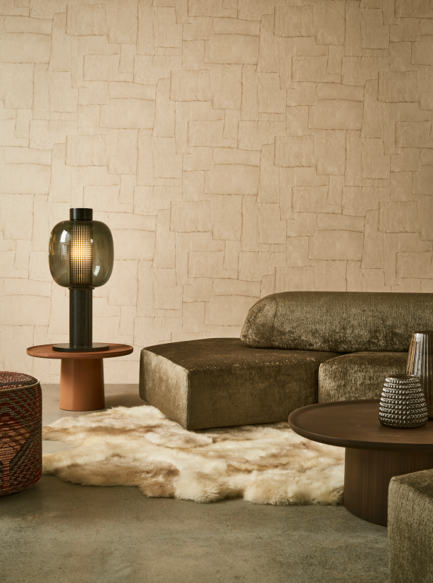 Sculptura отчетливо прослеживается структура — трещины и неровности, придающие стене рельеф. Удивительная геометрия в различных цветовых сочетаниях оживляет интерьер и привносит особый декоративный штрих.
