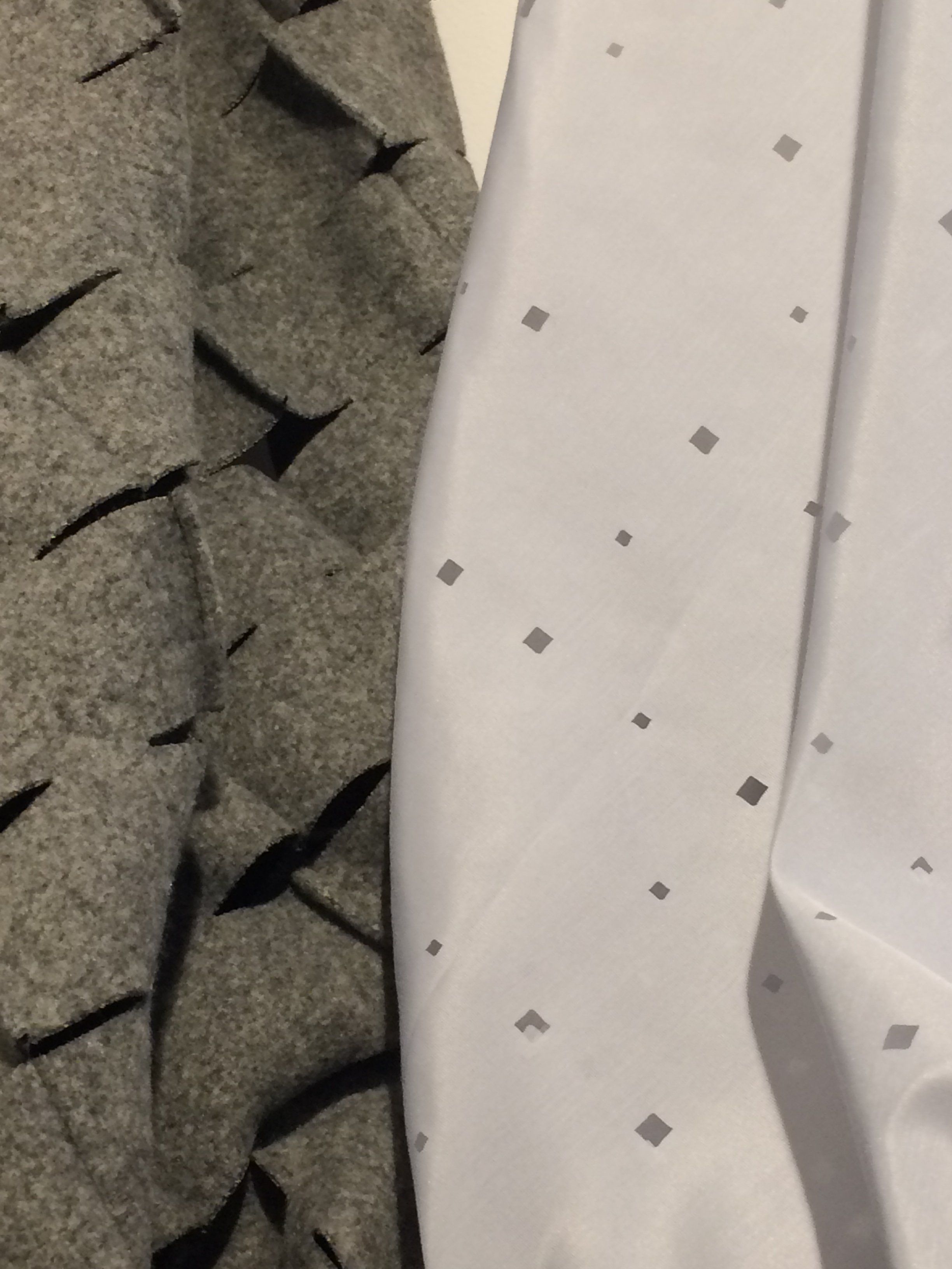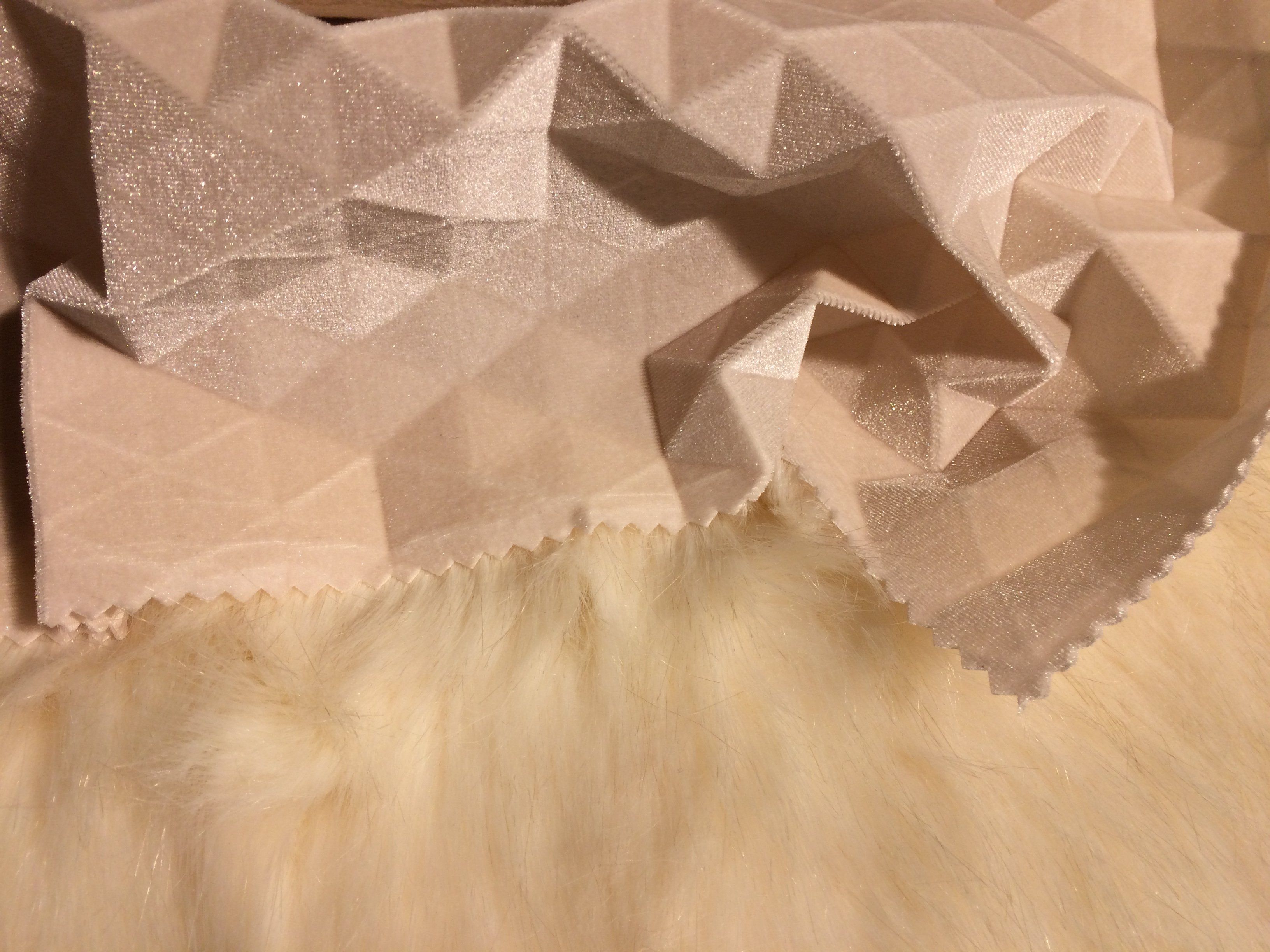 Это – не кубик Рубика, а флоковая ткань с 3D эффектом и металлическими блестками из коллекции Architectonique. Эффектные геометрические ткани из этой коллекции в сборке будут выглядеть как архитектурные конструкции постмодернизма.