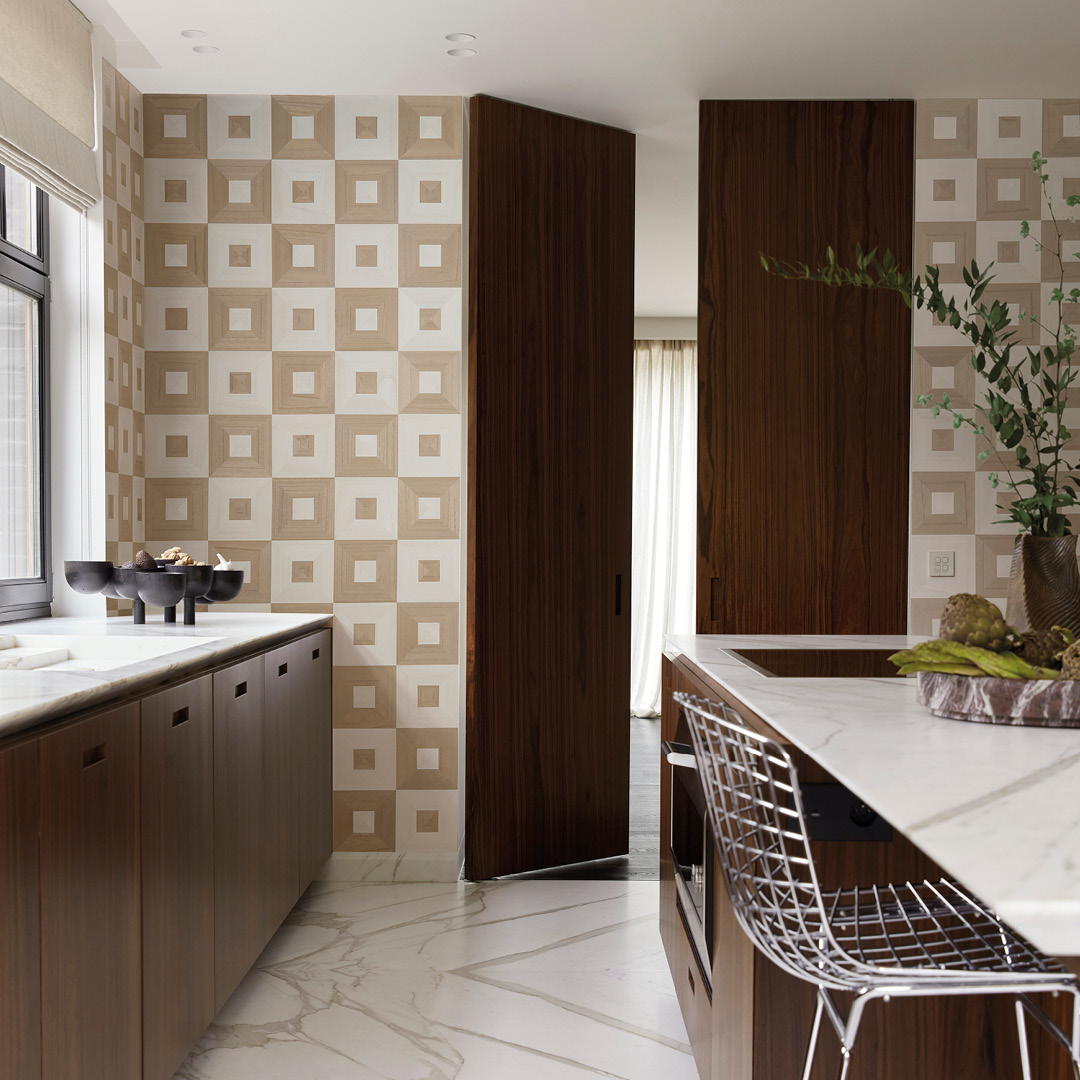 Клетчатый узор в технике маркетри, вдохновленный эпохой Ренессанса.
