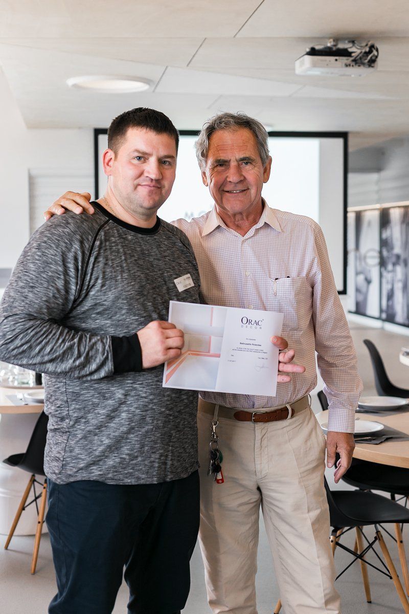 Ги Тайо — основатель компании Orac Decor. Это человек большого обаяния и простоты в общении. Свой бизнес он начал в 24(!) года. Cегодня компания Orac Decor — одна большая семья. С каким теплом и любовью Ги говорил о своих подчиненных. А еще он нам показал фото своих внуков, очаровательных малышей двойняшек, будущих директоров фабрики!