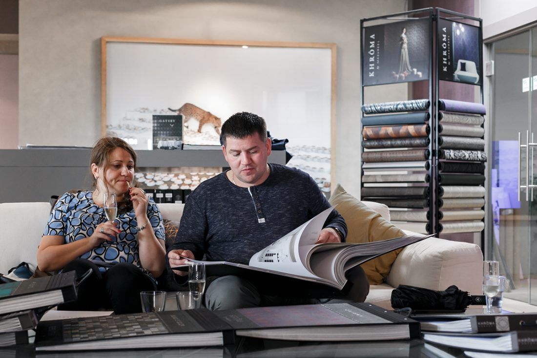 Сегодня фабрика разрабатывает обои и ткани таких брендов как Khroma, Khroma Zoom, Khlara, Guy Masureel. Поиск новых решений идет постоянно, и мы могли увидеть это своими глазами.