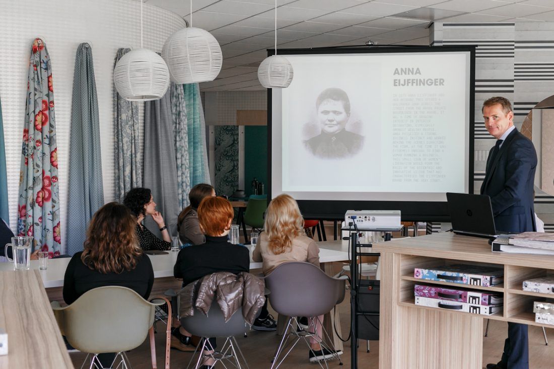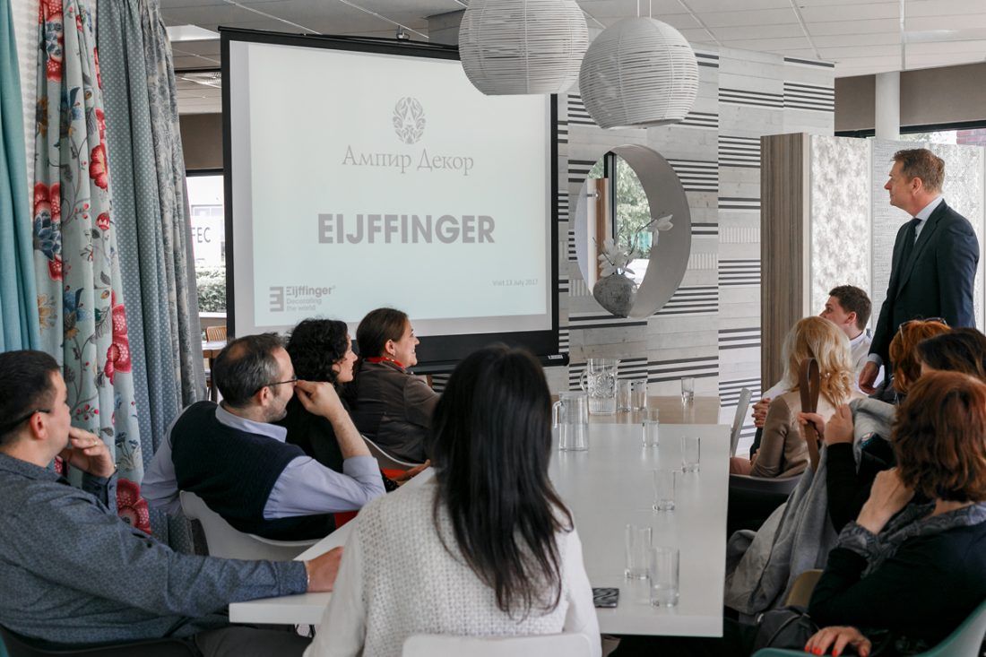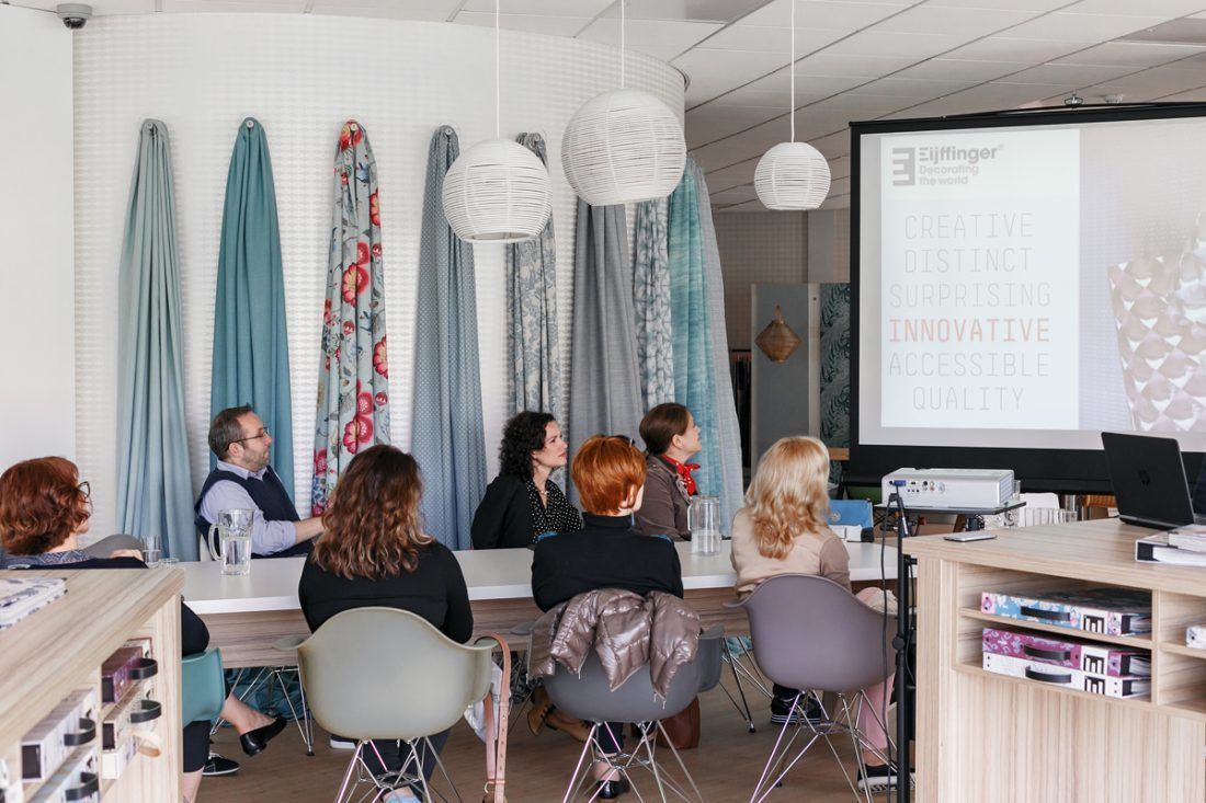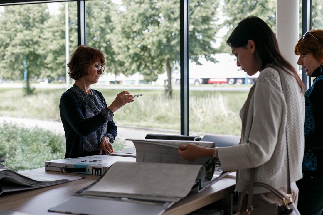 Недалеко от Роттердама мы посетили студию Eijffinger. Джерард Брекельман встретил нас в этом царстве дизайна. Нас провели в святая святых: комнату, где работают четыре девушки дизайнера. Дух творчества и креативности витал над рабочими столами с кусочками обоев и тканей. Cловно на наших глазах создавались композиции для будущих каталогов!
