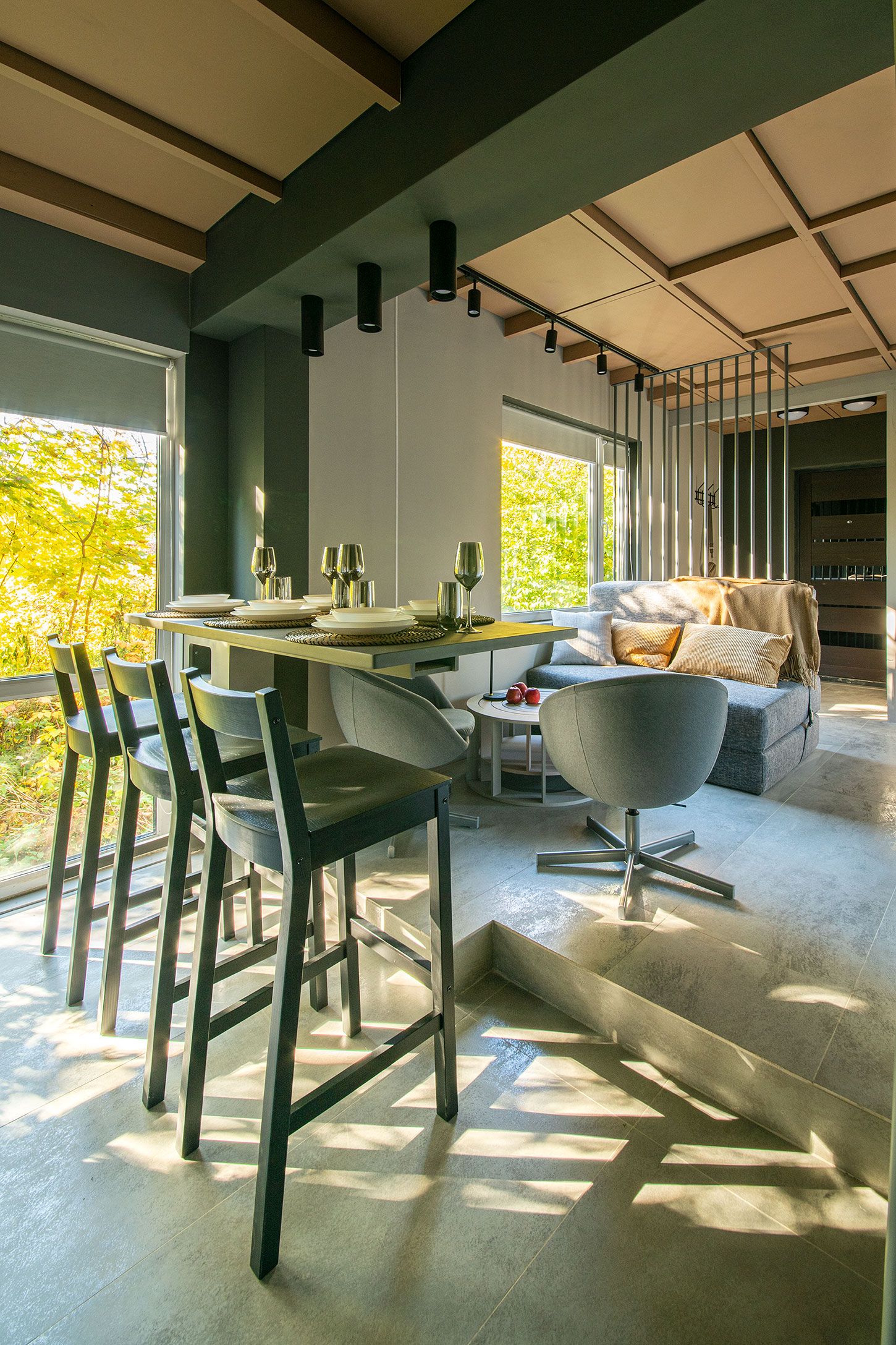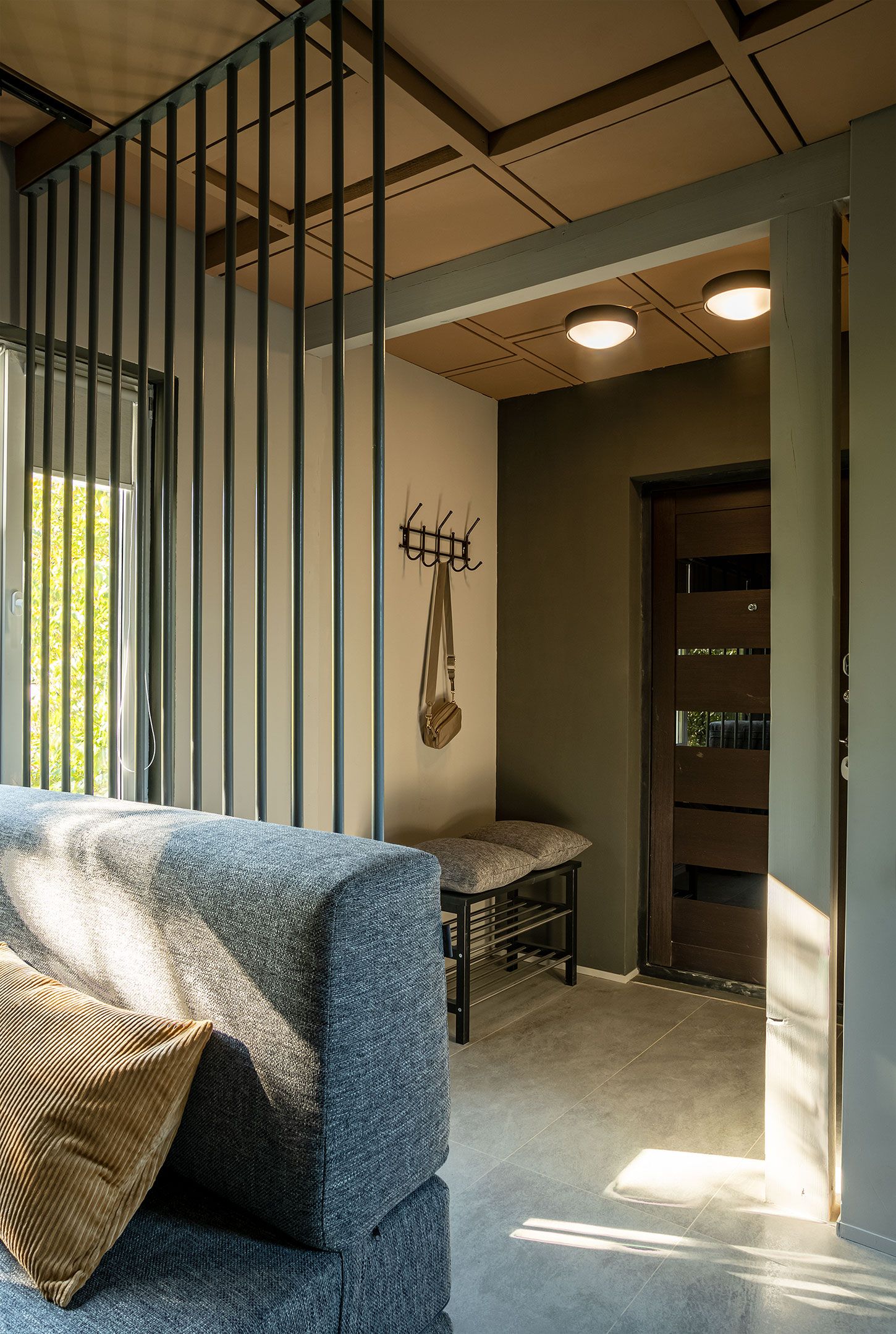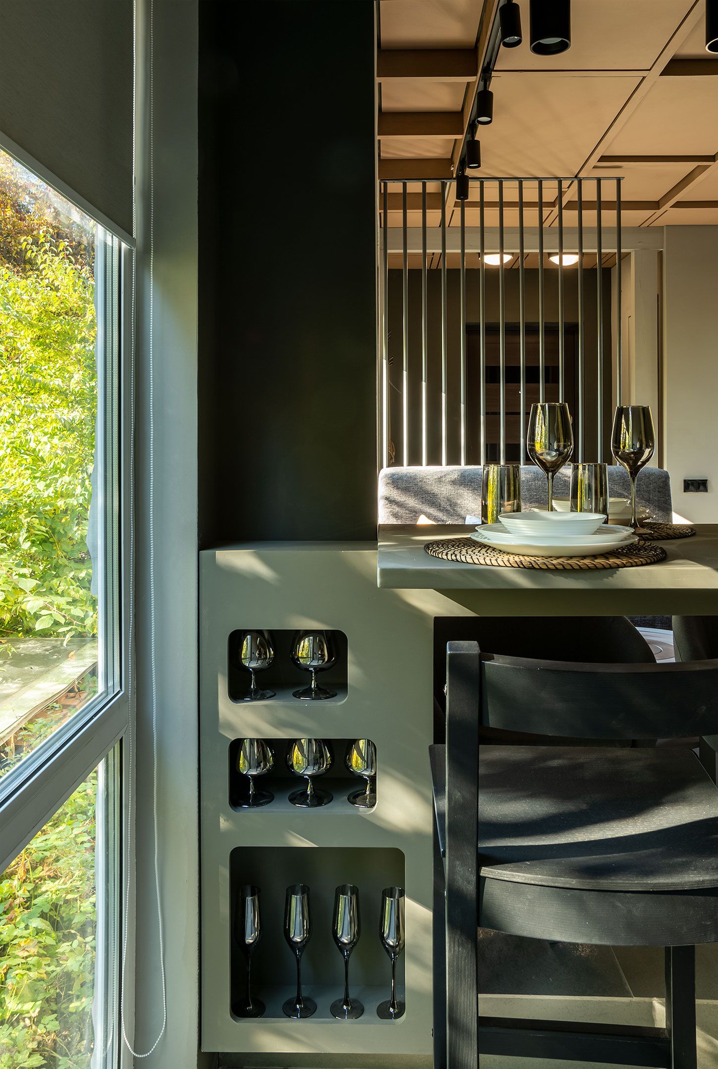 Небольшое пространство объединило кухню, гостиную, прихожую и место для хранения вещей. Дизайнер Денис Олексиюк превратил недостаток места в достоинство и функциональную особенность помещения.
