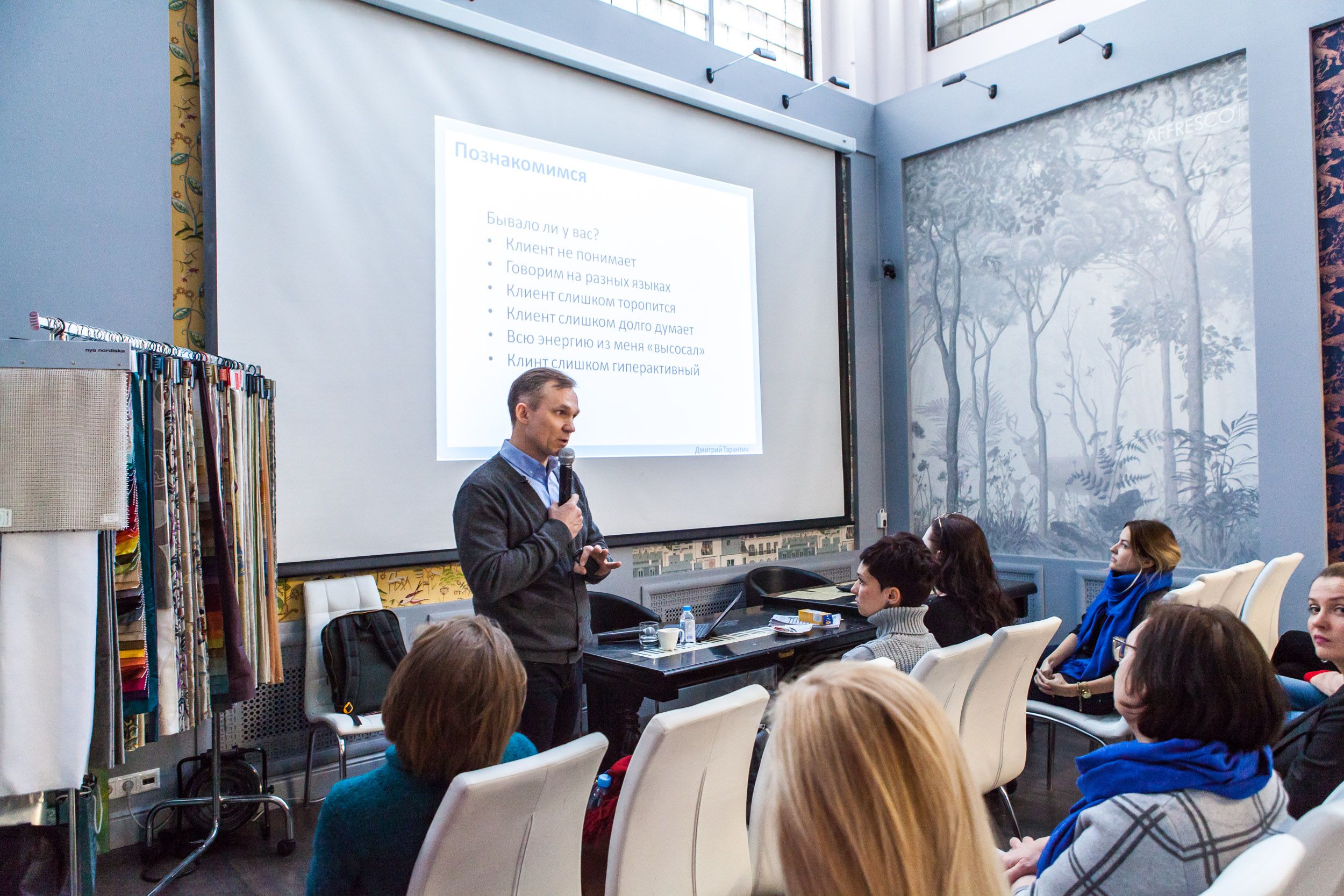 Психолог Дмитрий Тарантин провел двухчасовую встречу с разбором конкретных случаев из практики общения дизайнеров и клиентов.