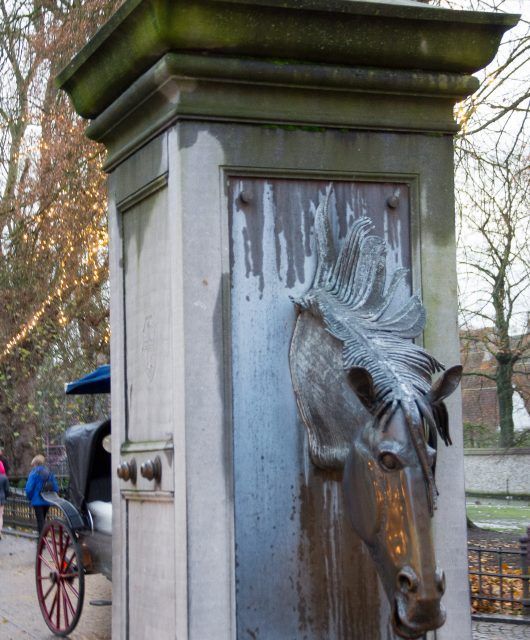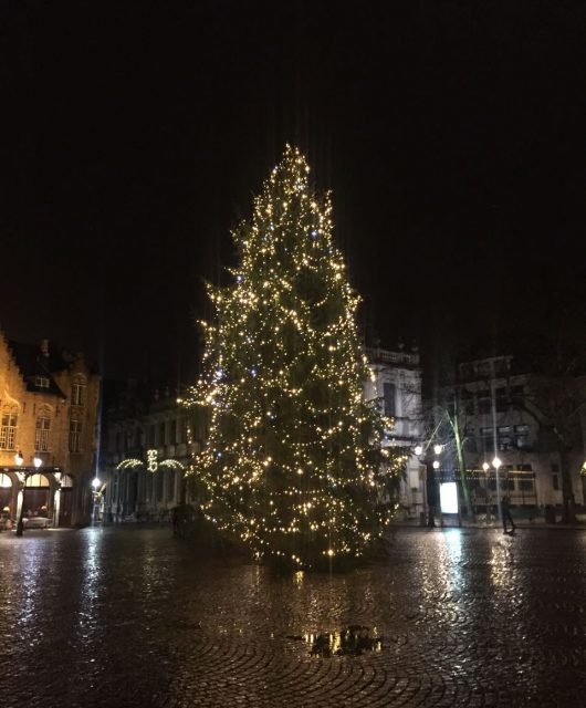 Пора рождественских ярмарок уже началась, и вечером город порадовал нас огоньками гирлянд. Сочетание осенней листвы, дождя и новогодних украшений оставило от Брюгге ощущение сказки наяву.
