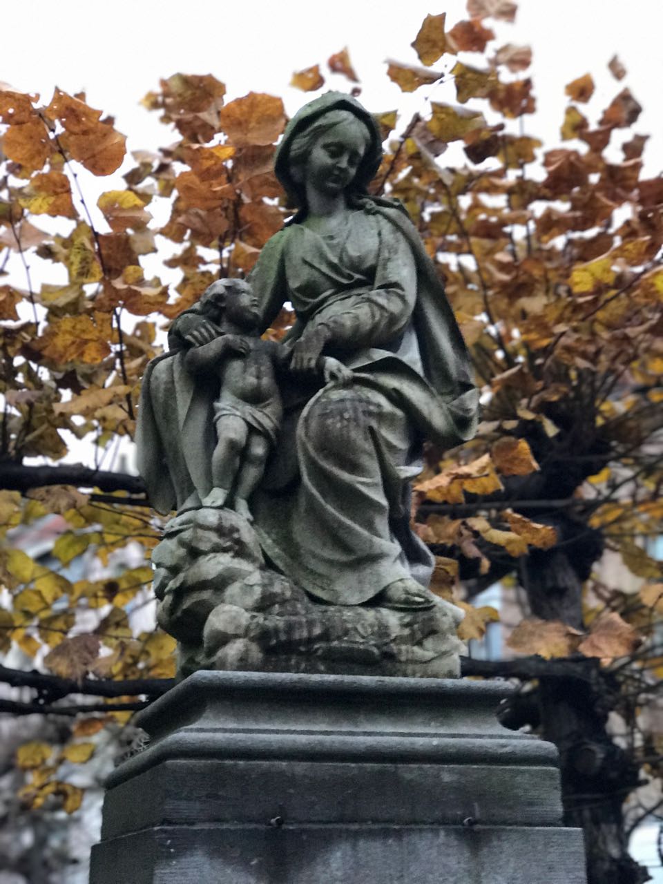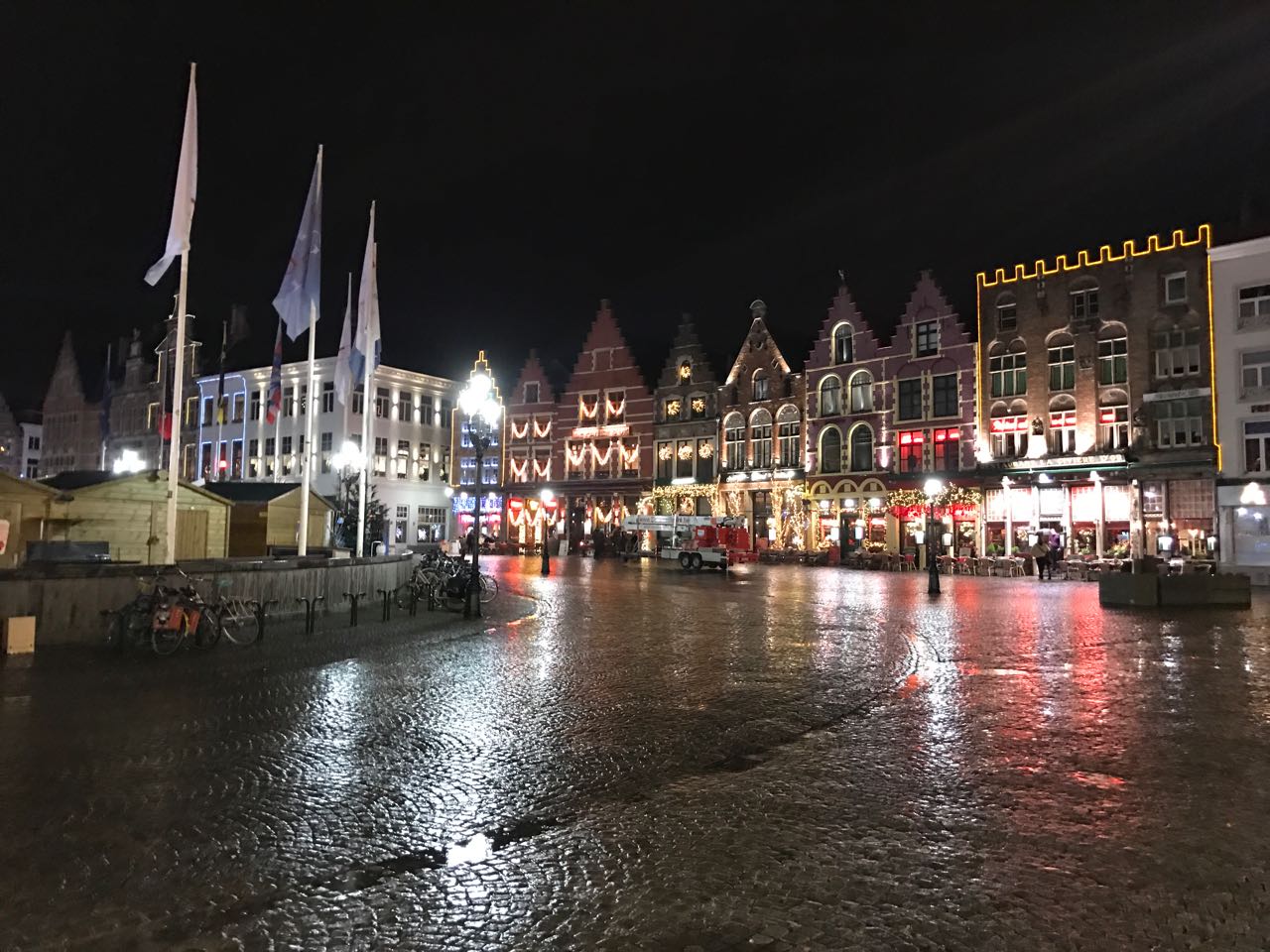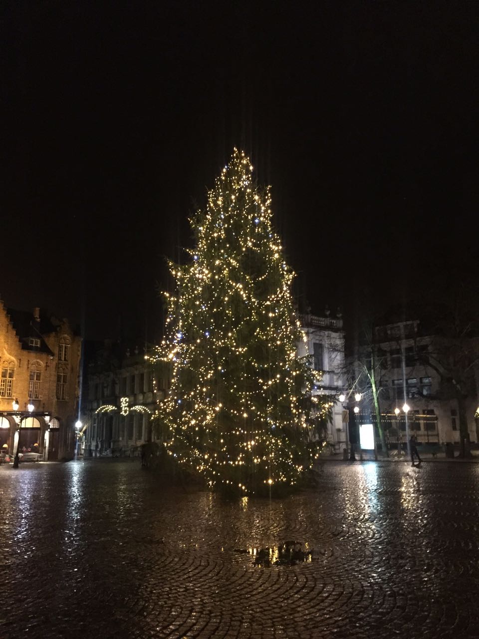 Пора рождественских ярмарок уже началась, и вечером город порадовал нас огоньками гирлянд. Сочетание осенней листвы, дождя и новогодних украшений оставило от Брюгге ощущение сказки наяву.