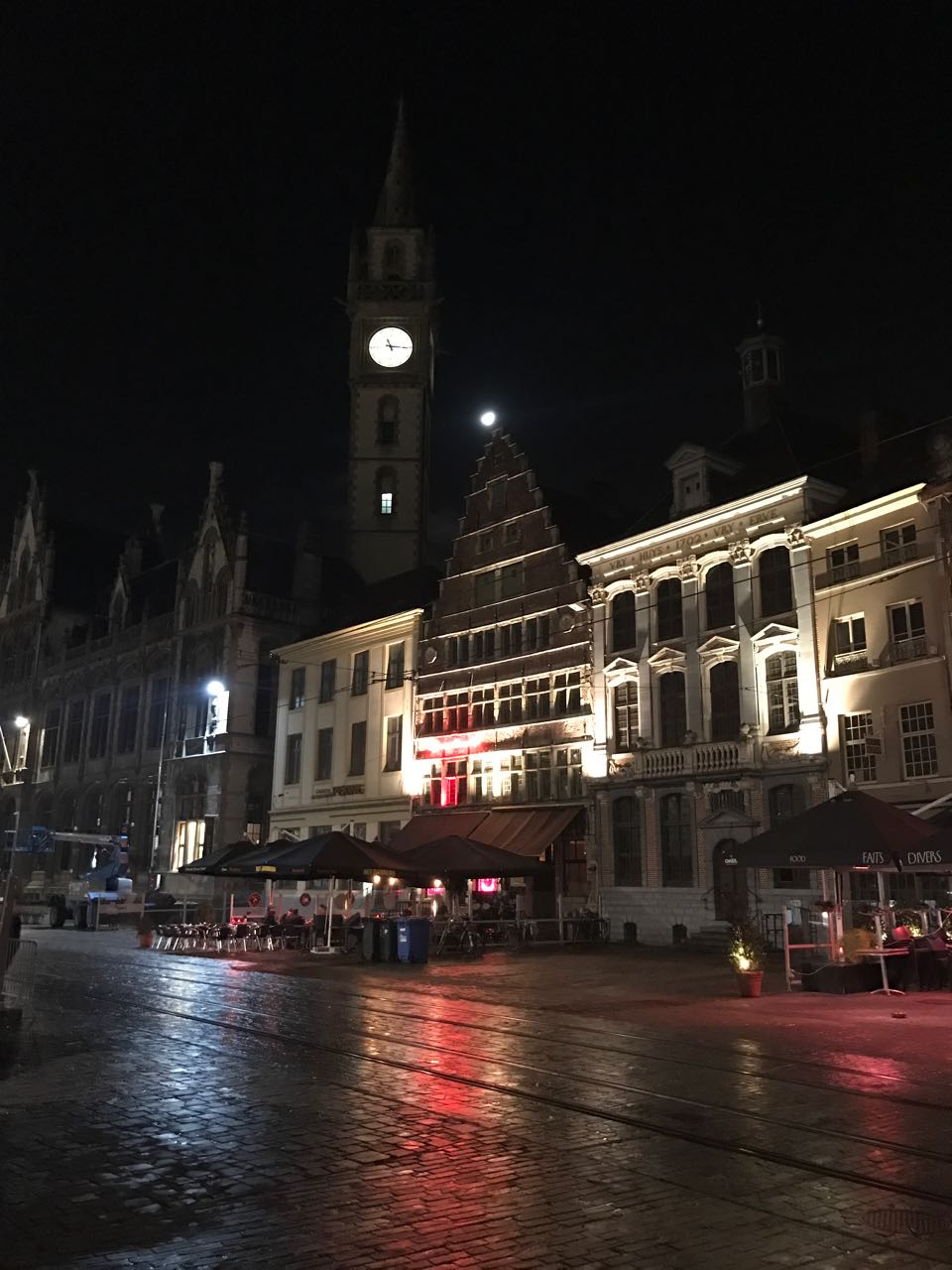 Ночной сияющий Гент с огромным собором святого Бавона и не менее огромной инсталляцией коровника прямо на центральной площади покорил нас с первого взгляда.