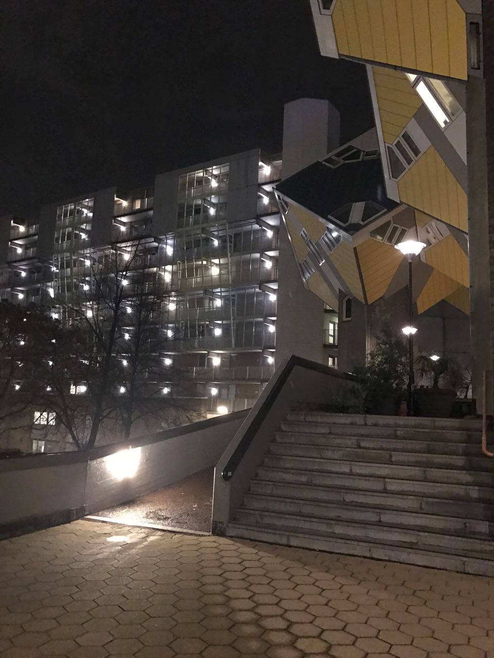 Вечером того же дня команда Ампир Декор оказалась в Ротттердаме и без промедления отправилась на ночную прогулку. Знаменитые дома-кубики архитектора Пита Блома стали последним ярким впечатлением третьего дня дизайн-путешествия Ампир Декор.