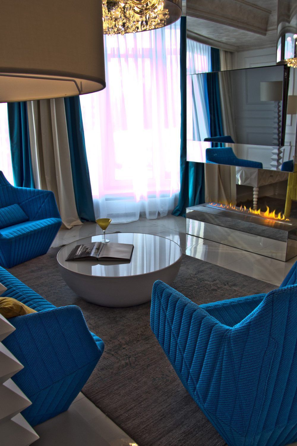 Фишка этого интерьера в том, что он никого не оставляет равнодушным. Причем реакция может носить, как положительный, так и негативный характер. Для некоторых кажется, что здесь идет перебор по цвету, формам, сочетанию классического и современного. Самой заказчице интерьер очень нравится, и для нее важно, что он выглядит так нестандартно!