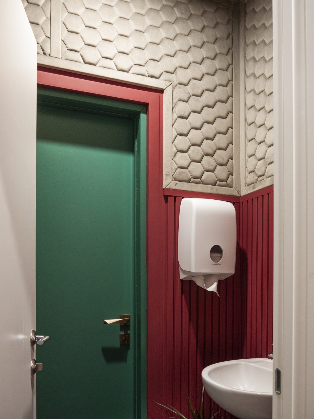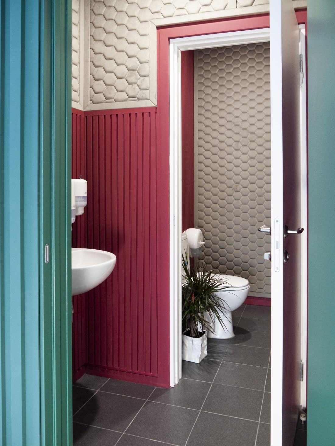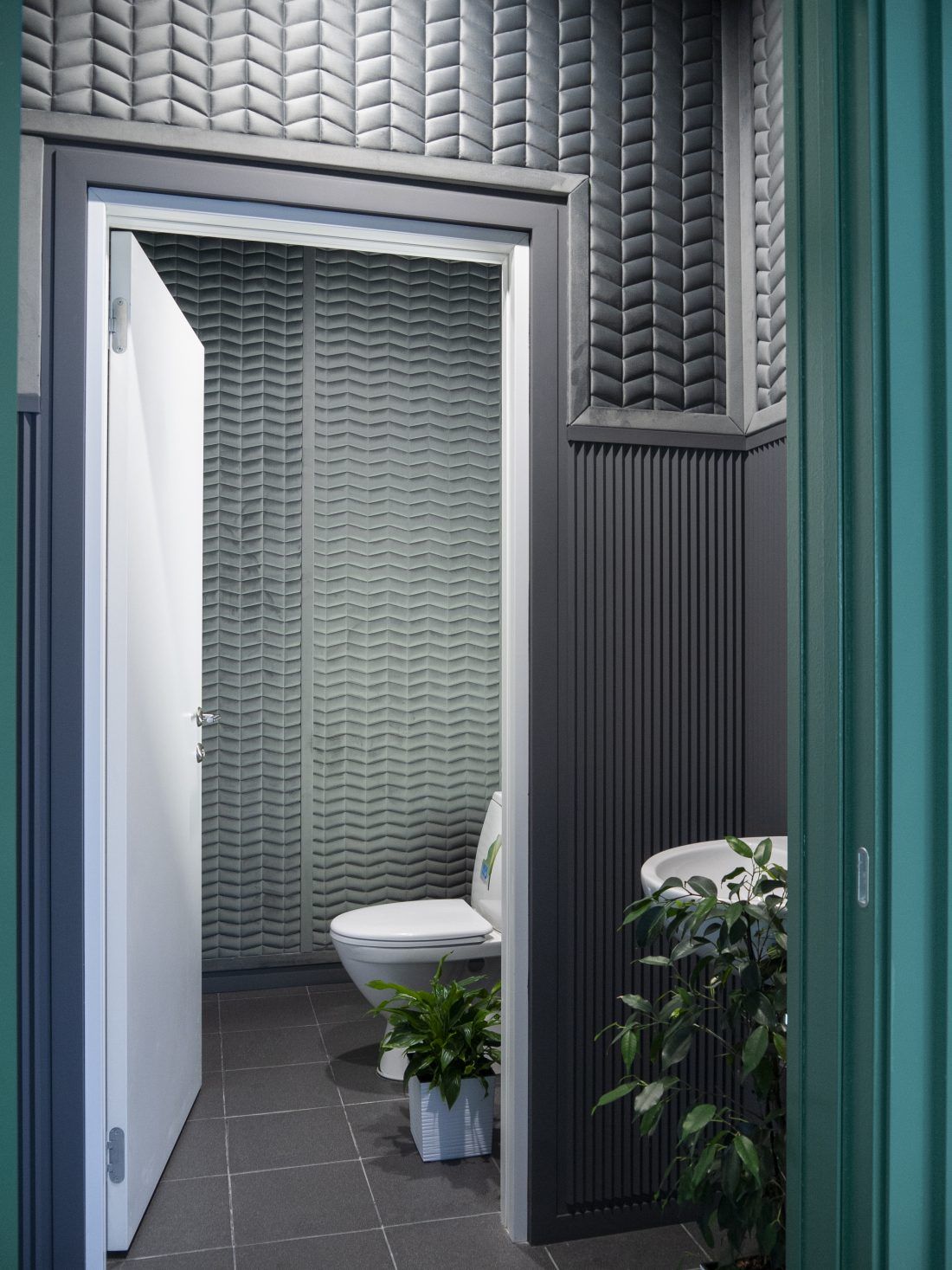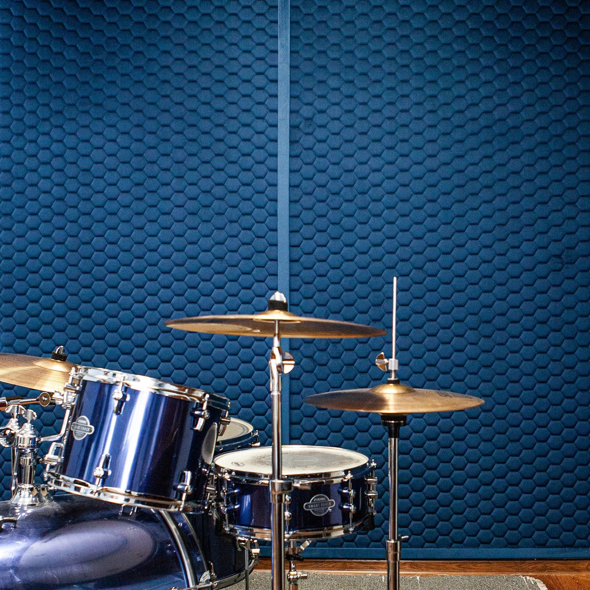 Обои Chesterwall стали не только украшением класса ударных инструментов, но и решили проблему проникновения звука из класса в другие помещения и наоборот. Дизайн — Honeycomb, цвет — Iris.