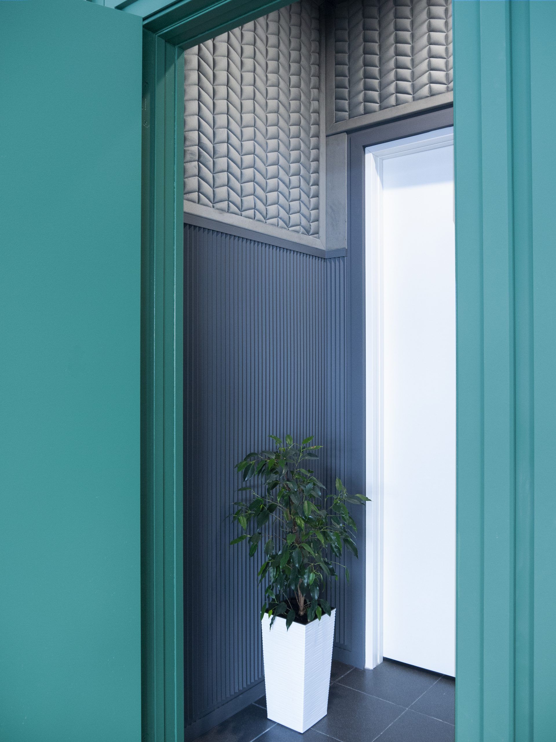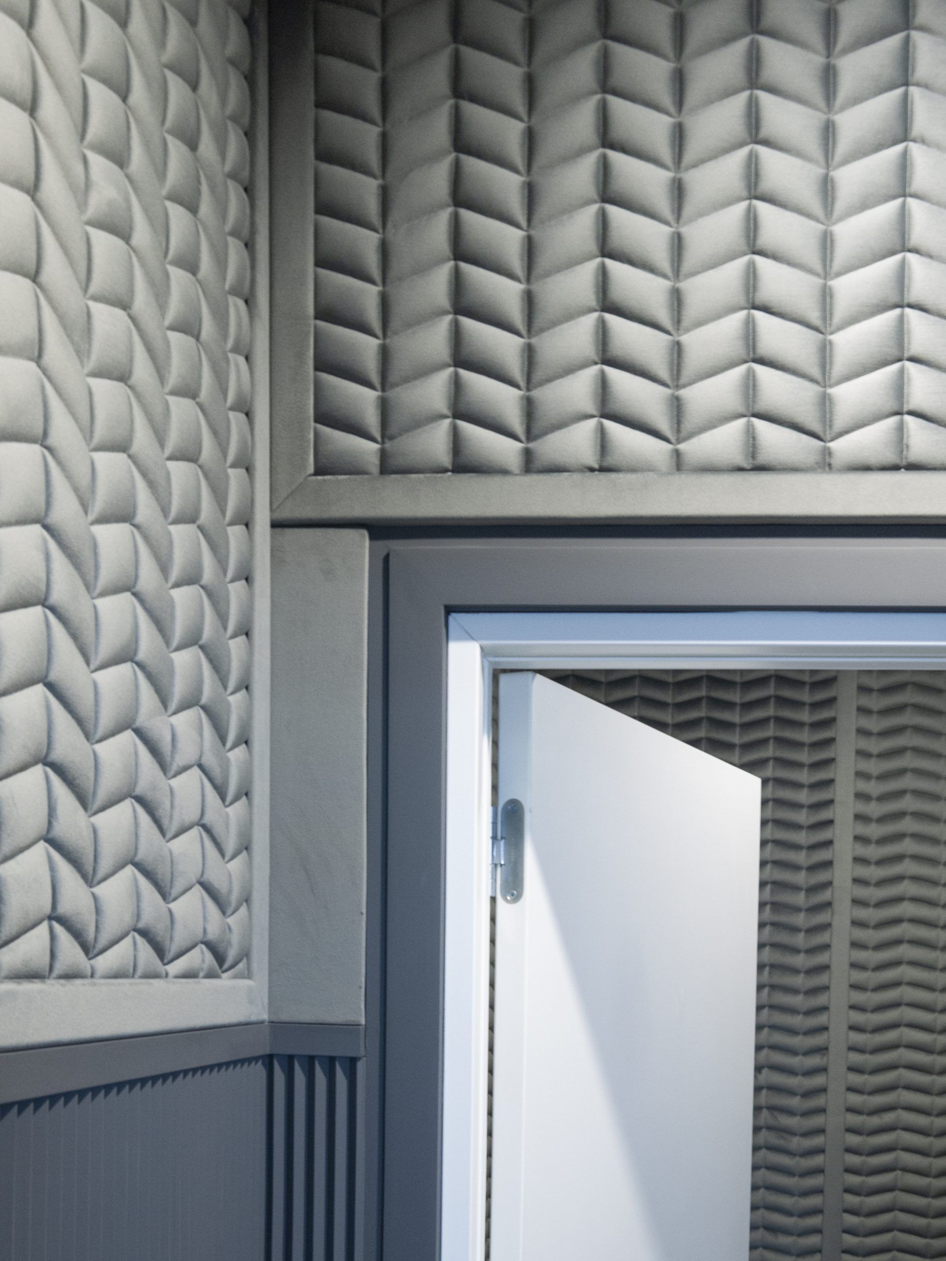 Обои Chesterwall стали не только украшением класса ударных инструментов, но и решили проблему проникновения звука из класса в другие помещения и наоборот. Дизайн — Honeycomb, цвет — Iris.