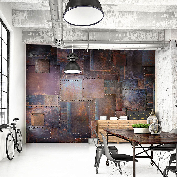 ⚙️ Металл с эффектом коррозии и патины— дань индустриальному прошлому. Это фактуры состаренной меди, покрытой патиной, ржавого железа, потрескавшейся от времени краски на жестяной поверхности. Они добавляют интерьеру драматизма, бунтарского духа и неповторимый шарм индустриальной археологии.