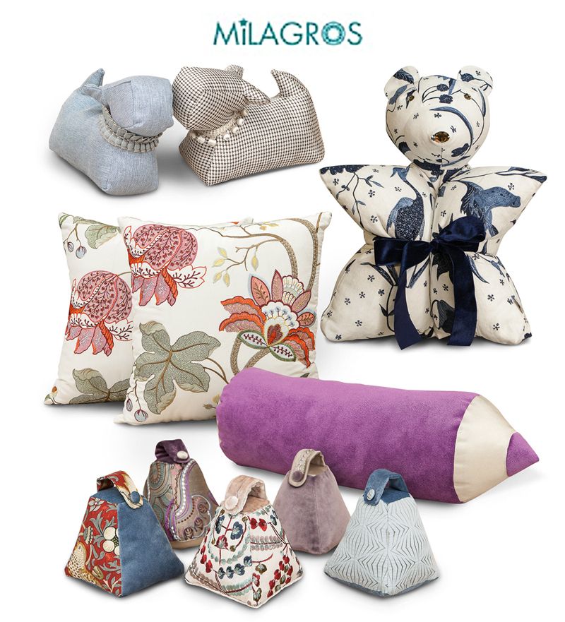 Бренд текстильных аксессуаров Milagros создан компанией Ампир Декор для любителей уютных мелочей. Это декоративные подушки, косметички, стопперы для дверей, сумки-шопперы…