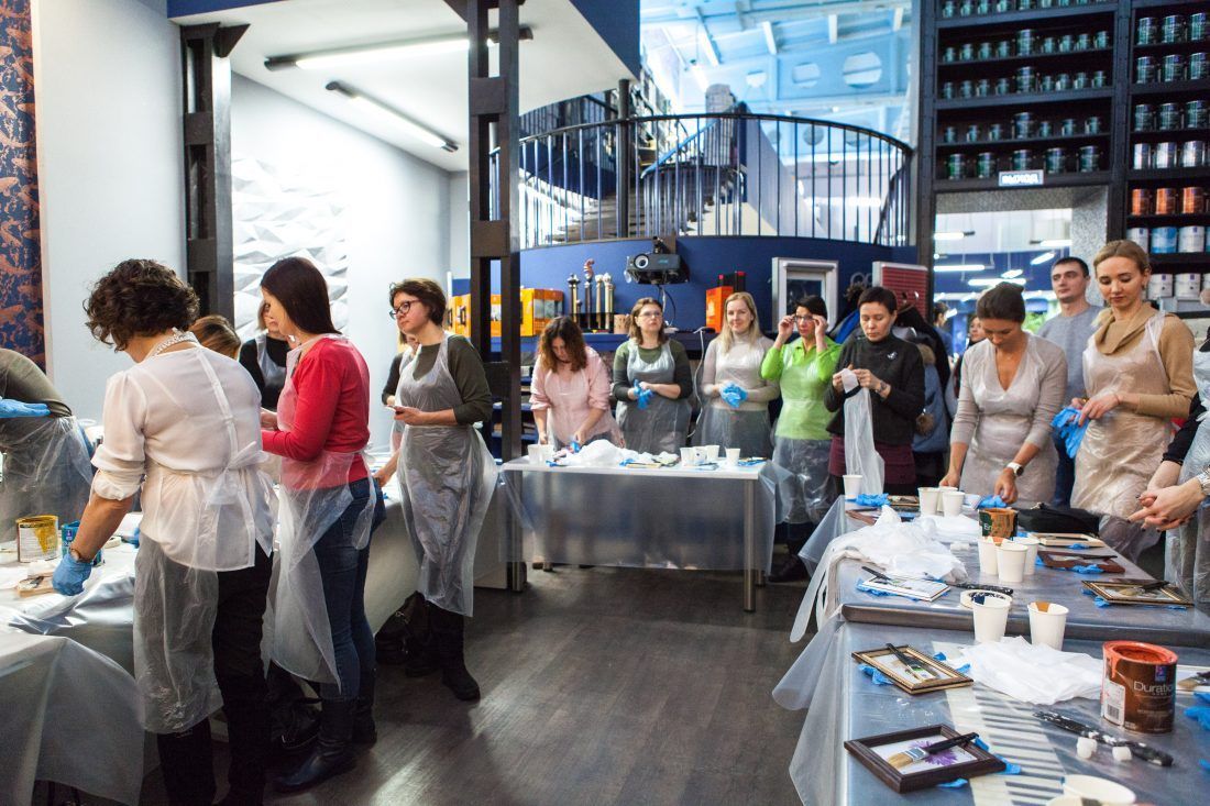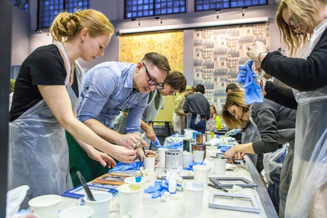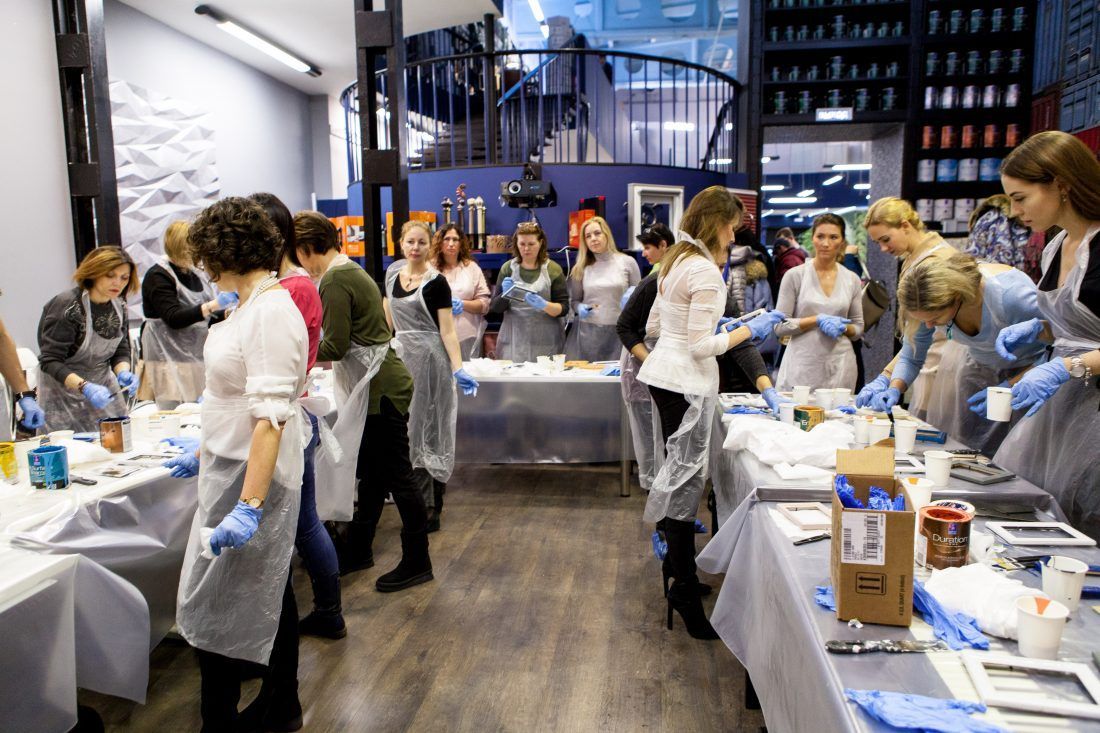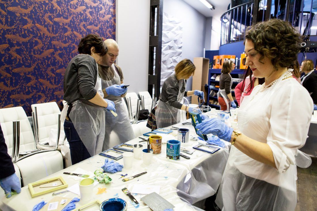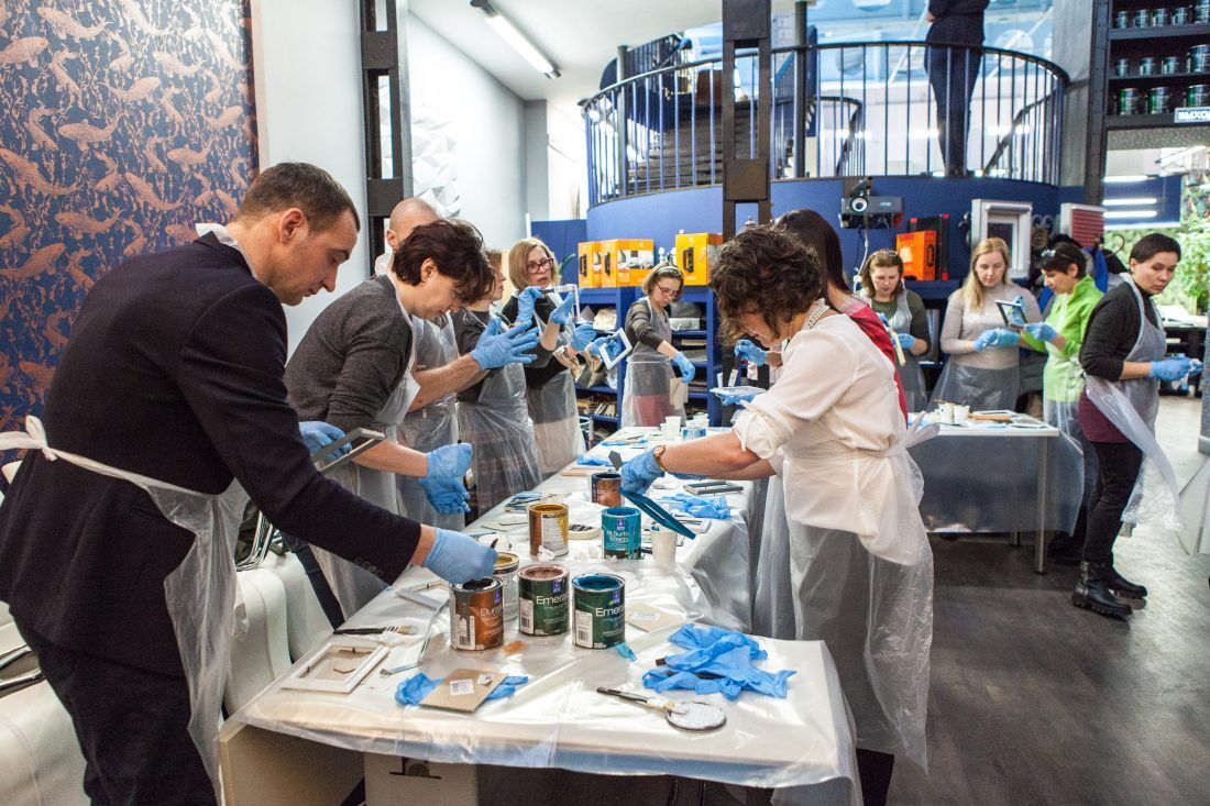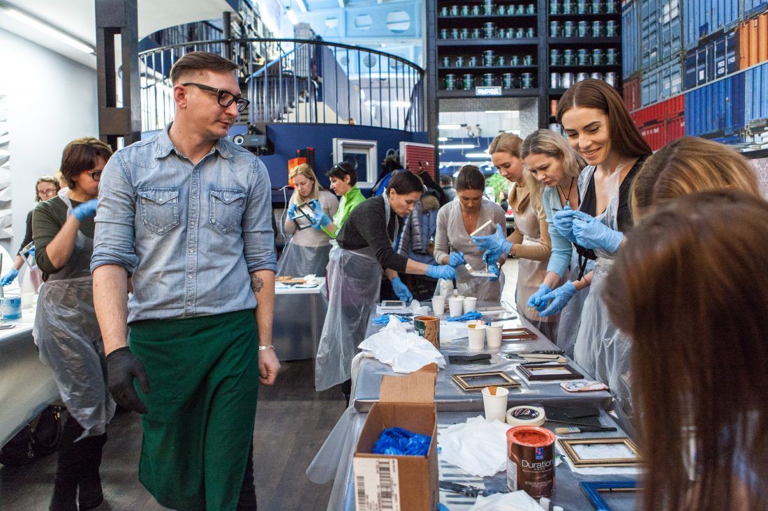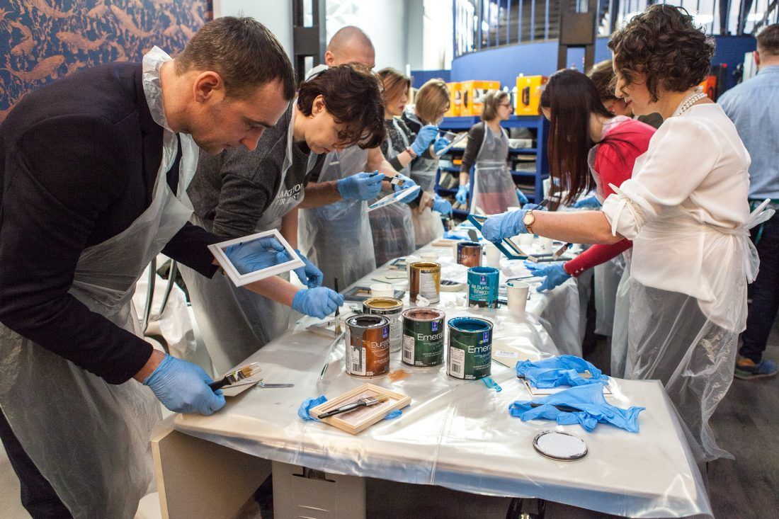 Творческие мастер-классы стали хорошей «фишкой» дизайн-лектория. На этот раз участники преображали предметы декора в авторские штучки при помощи красок Sherwin-Williams Duration, Emerald и All Surfaces Enamel.