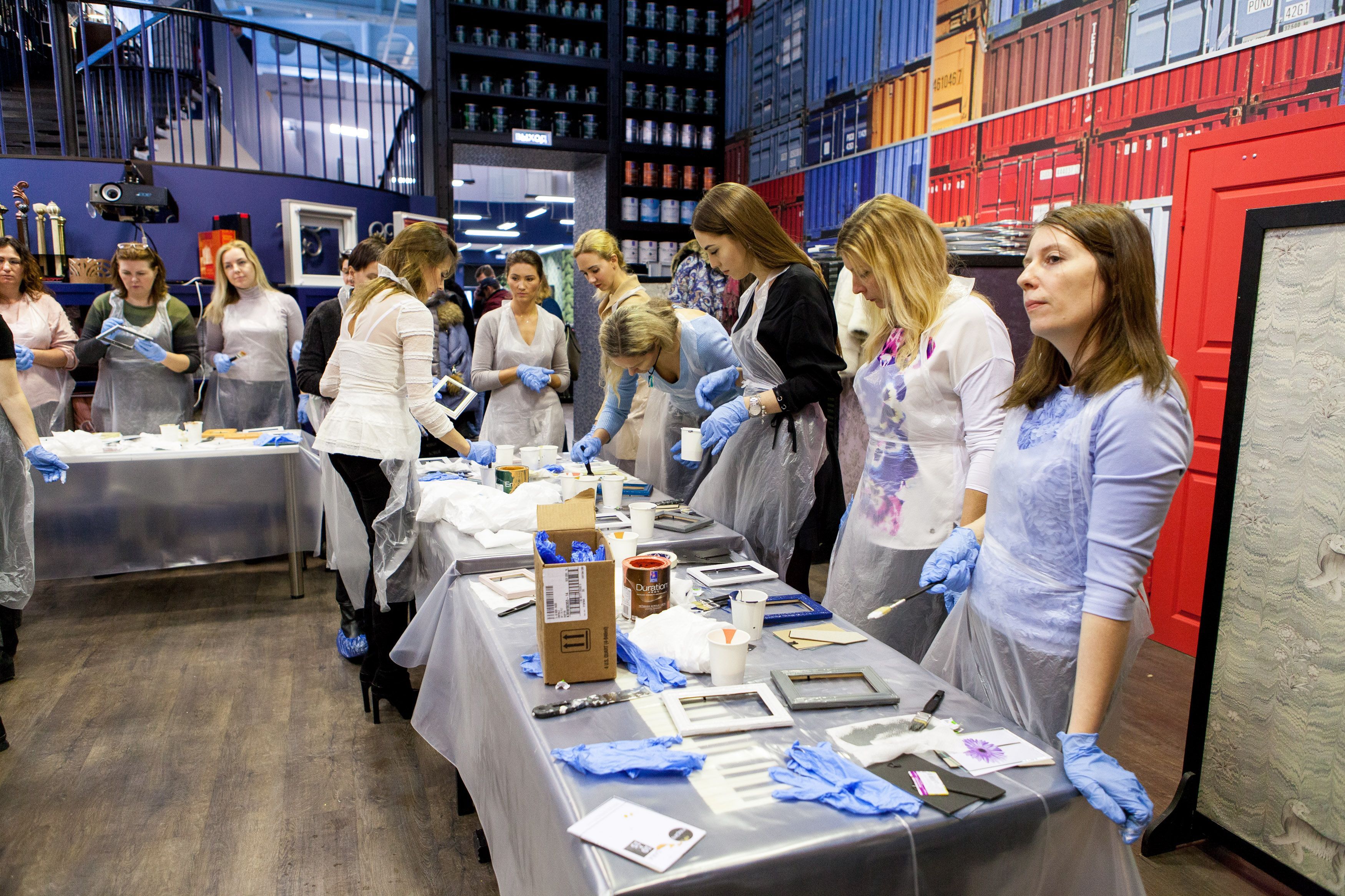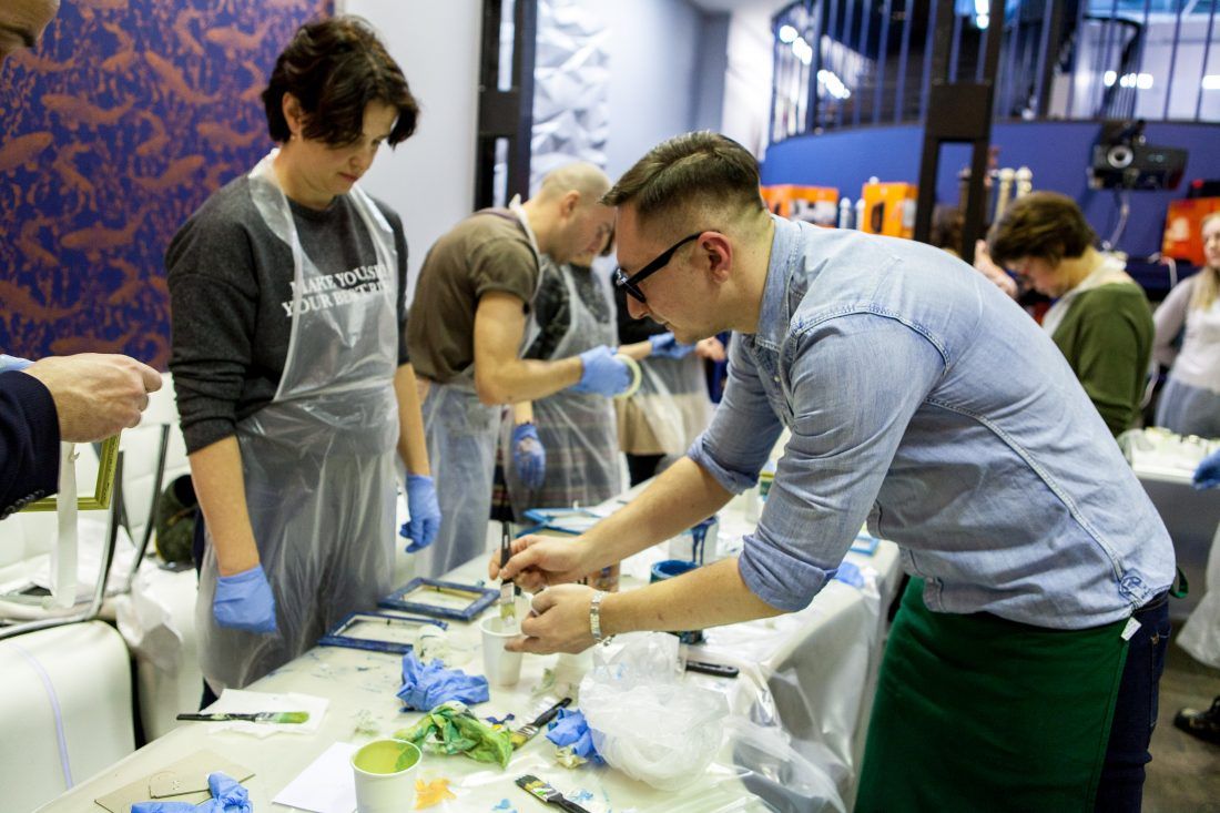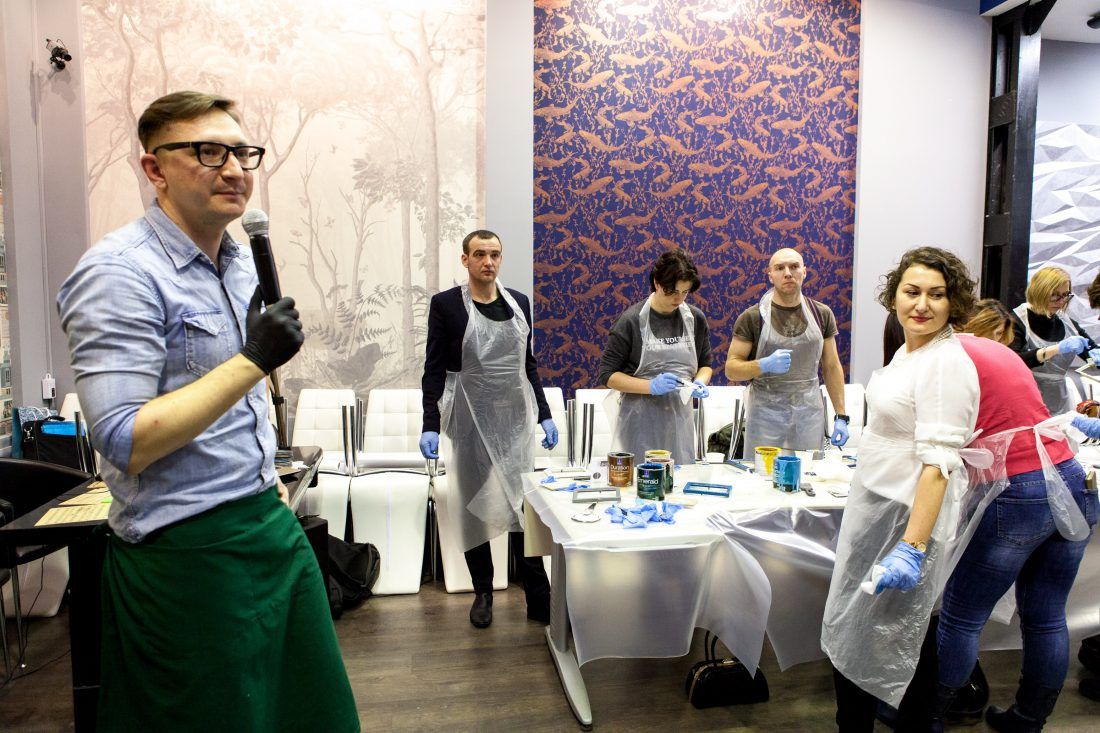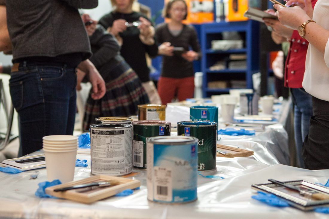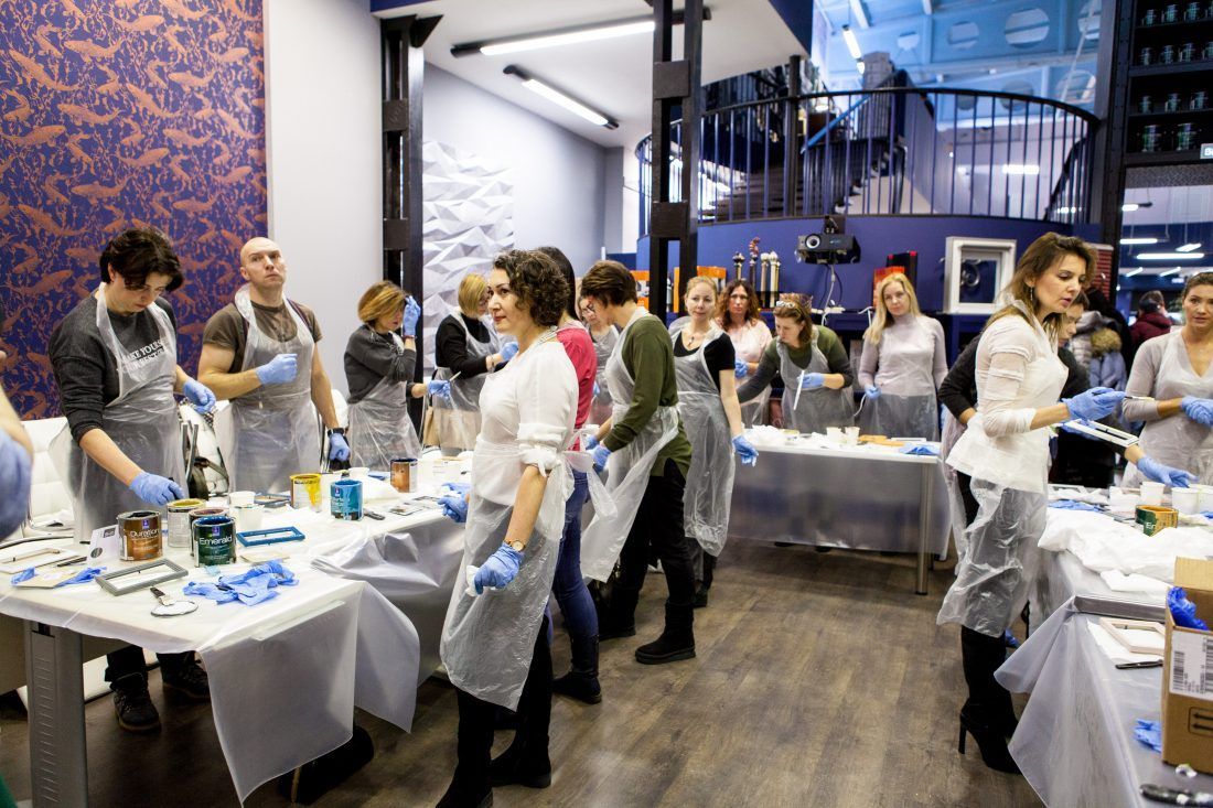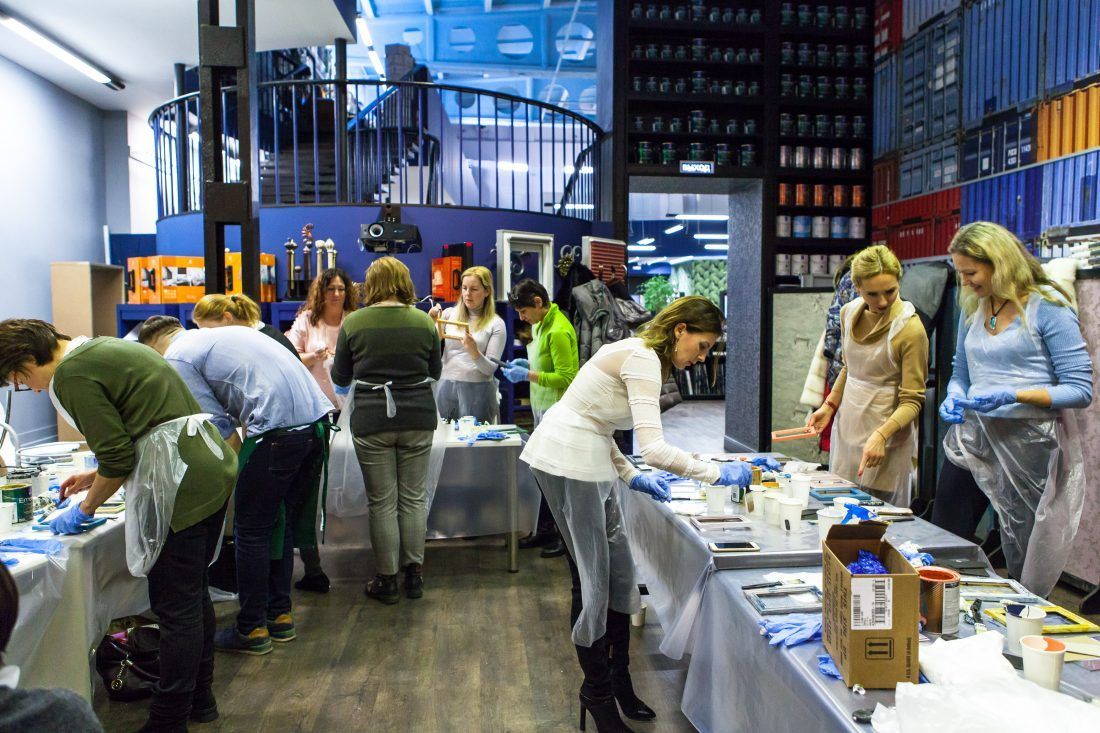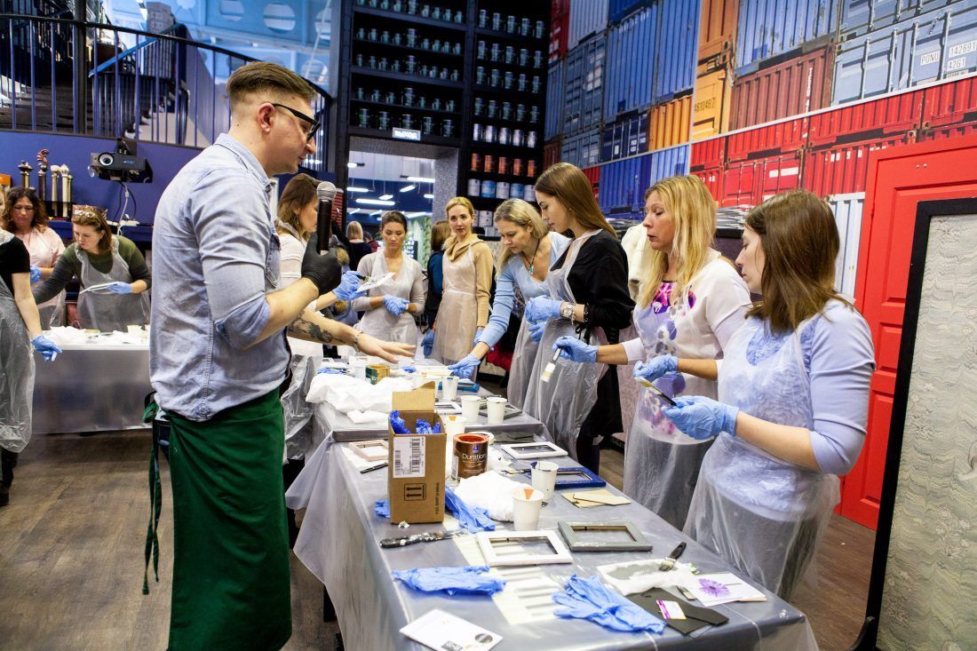Творческие мастер-классы стали хорошей «фишкой» дизайн-лектория. На этот раз участники преображали предметы декора в авторские штучки при помощи красок Sherwin-Williams Duration, Emerald и All Surfaces Enamel.