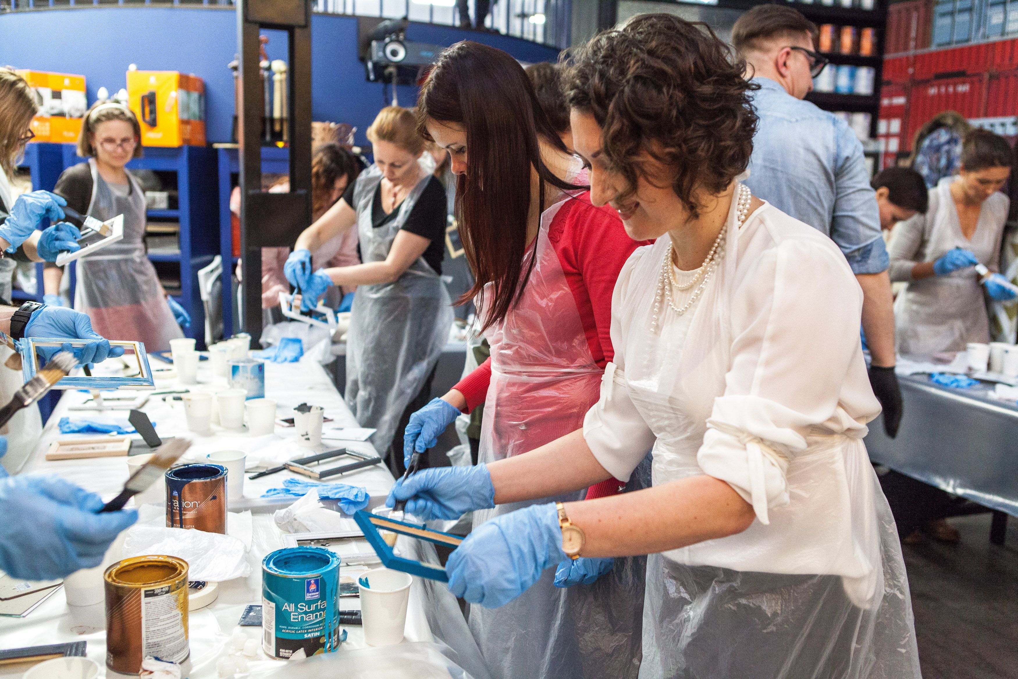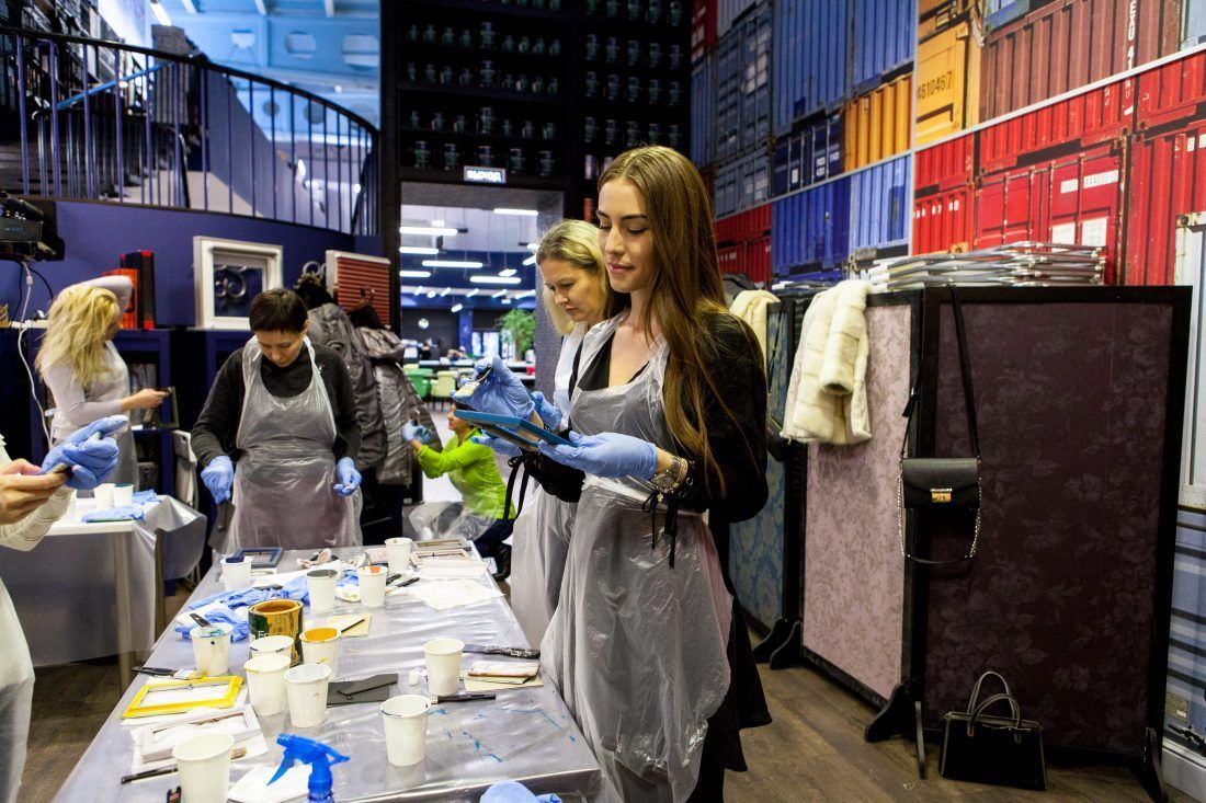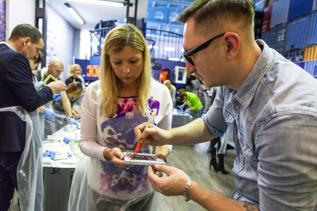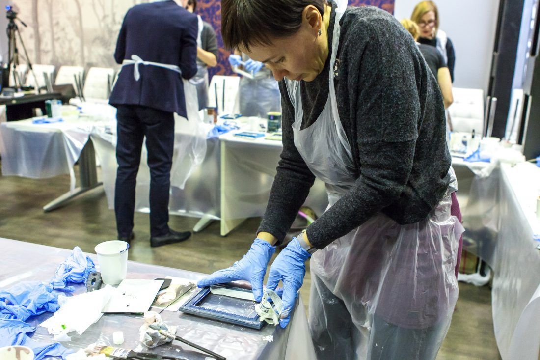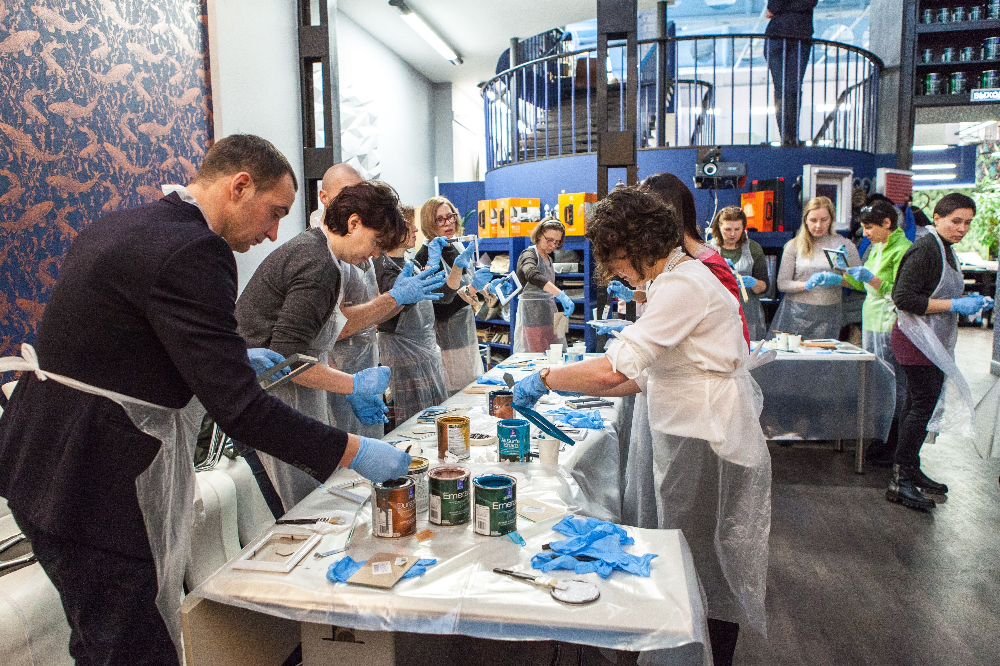 Творческие мастер-классы стали хорошей «фишкой» дизайн-лектория. На этот раз участники преображали предметы декора в авторские штучки при помощи красок Sherwin-Williams Duration, Emerald и All Surfaces Enamel.