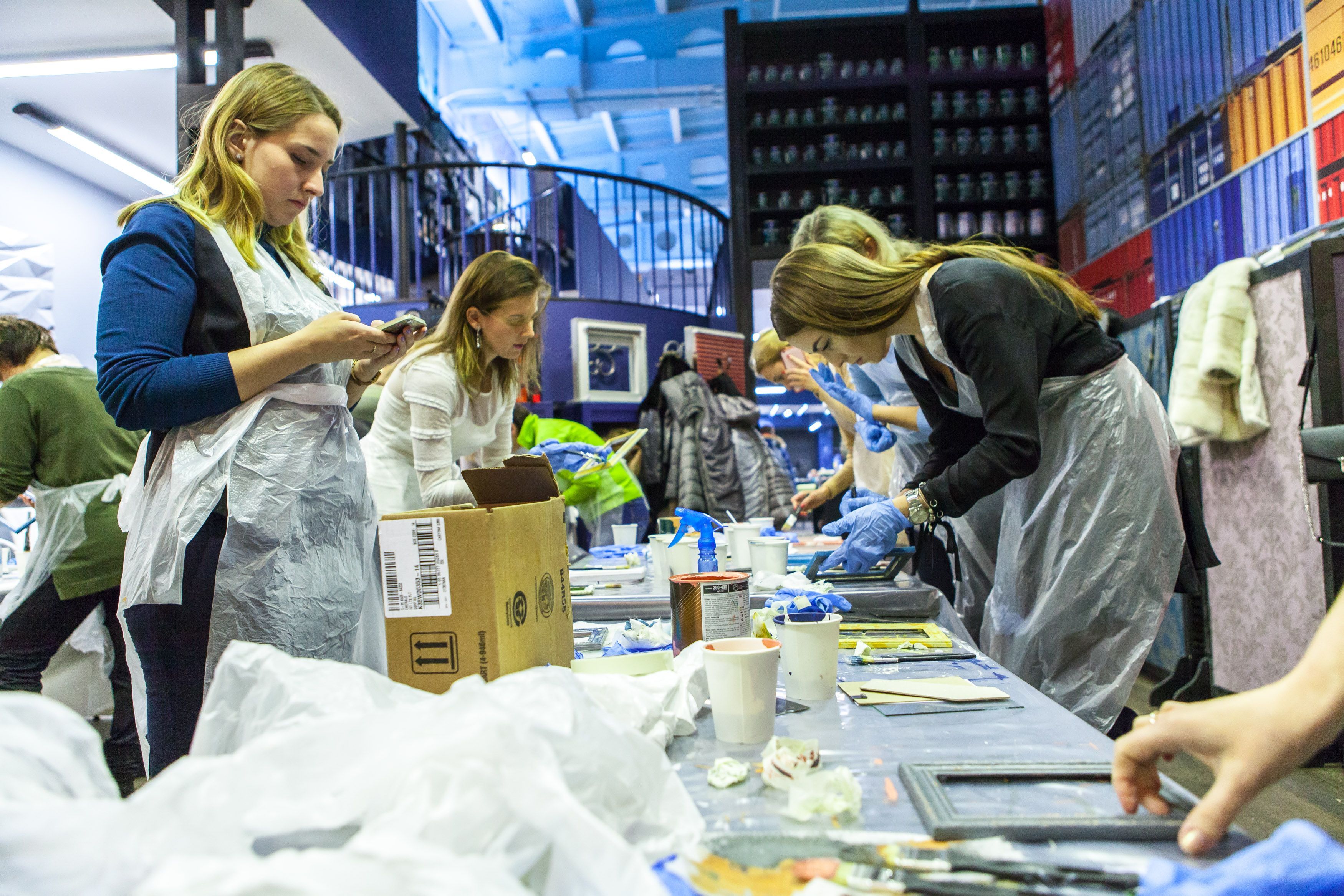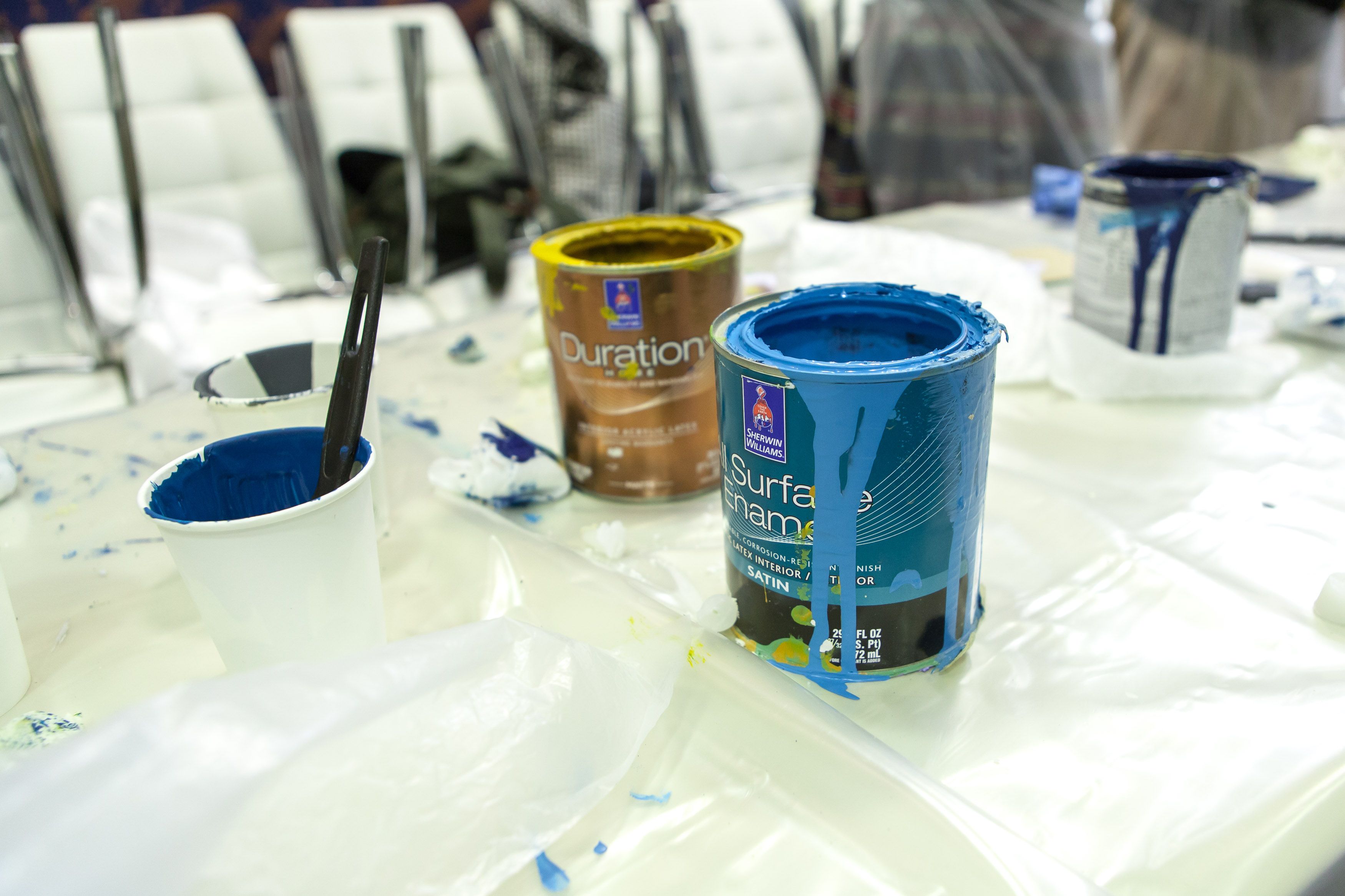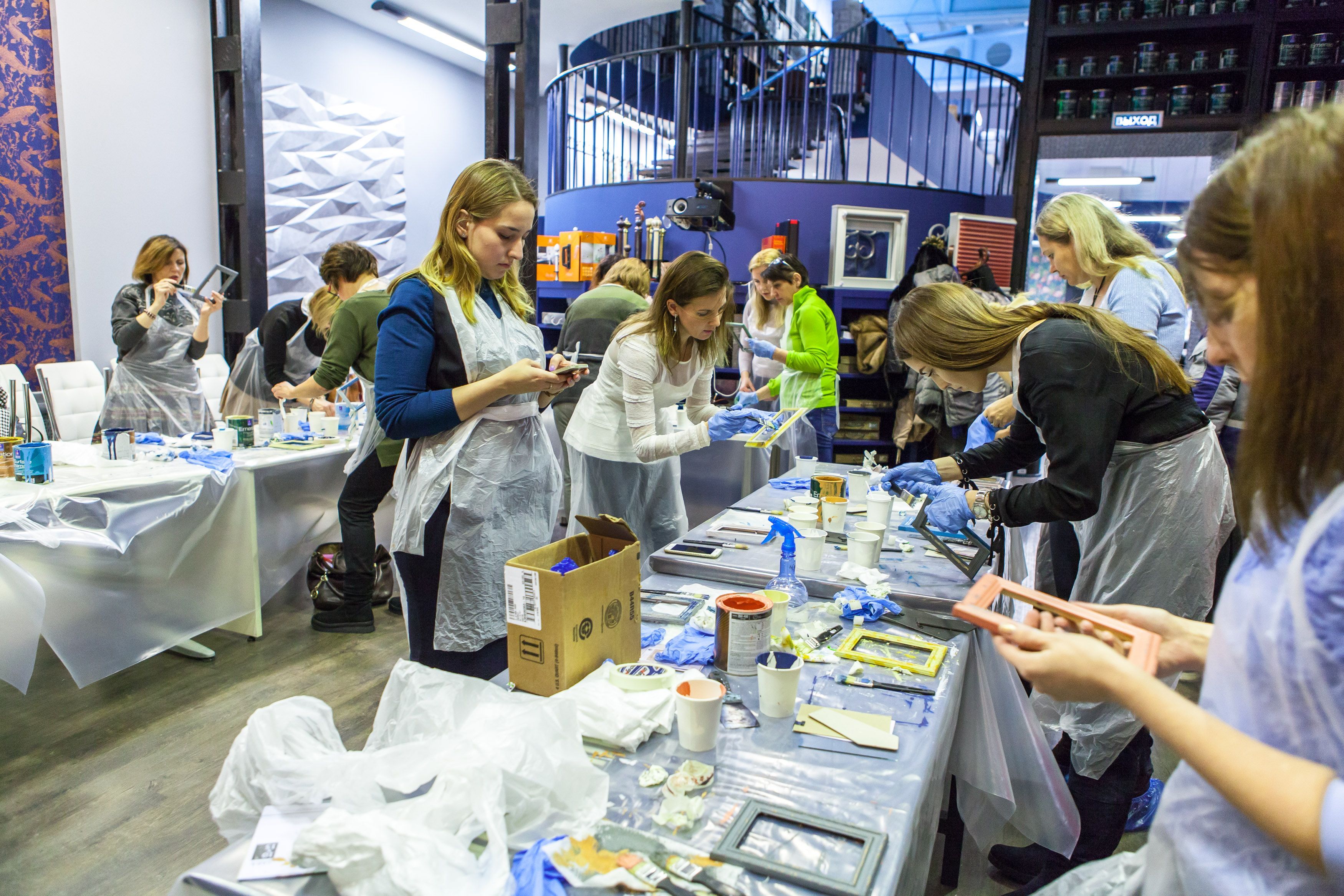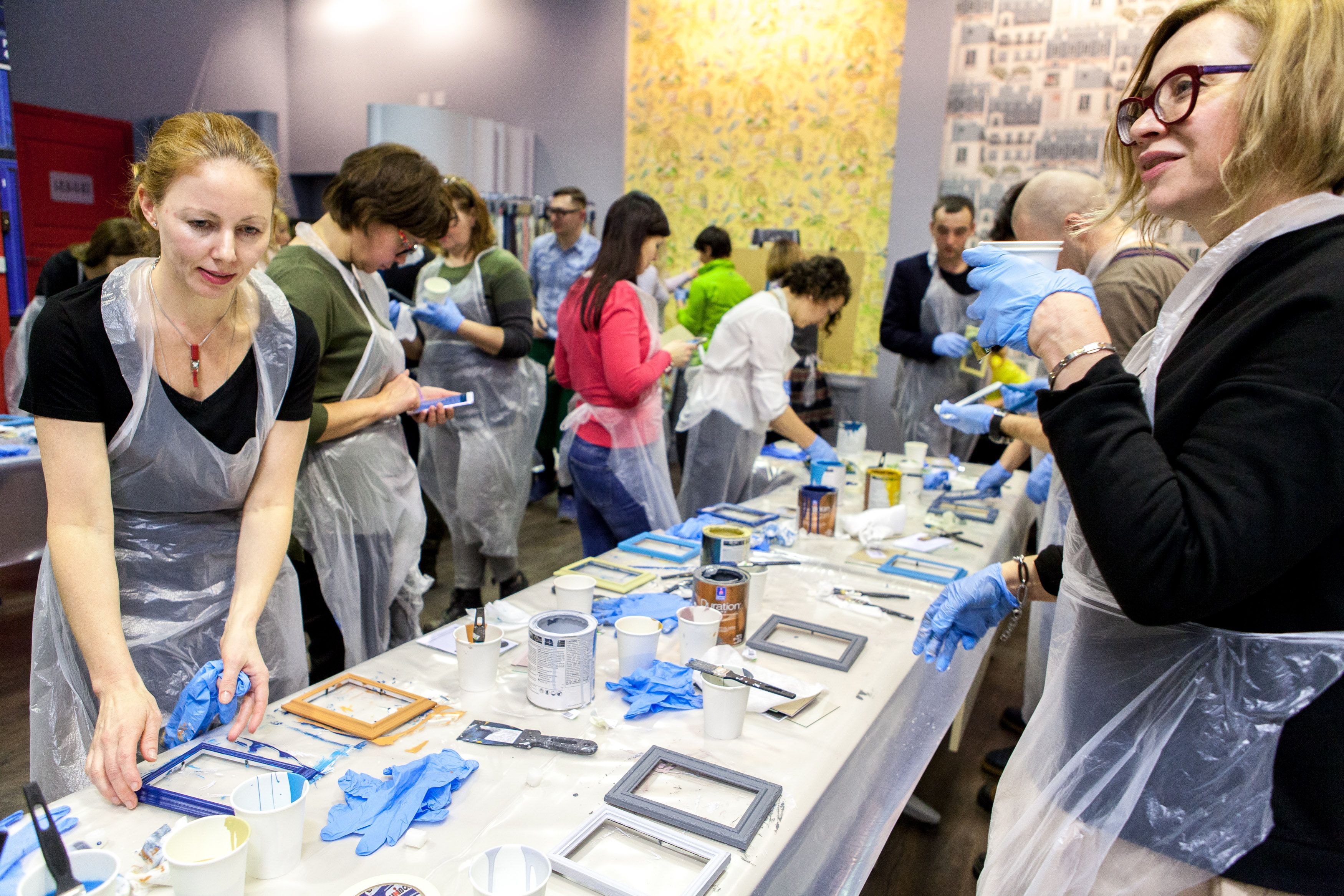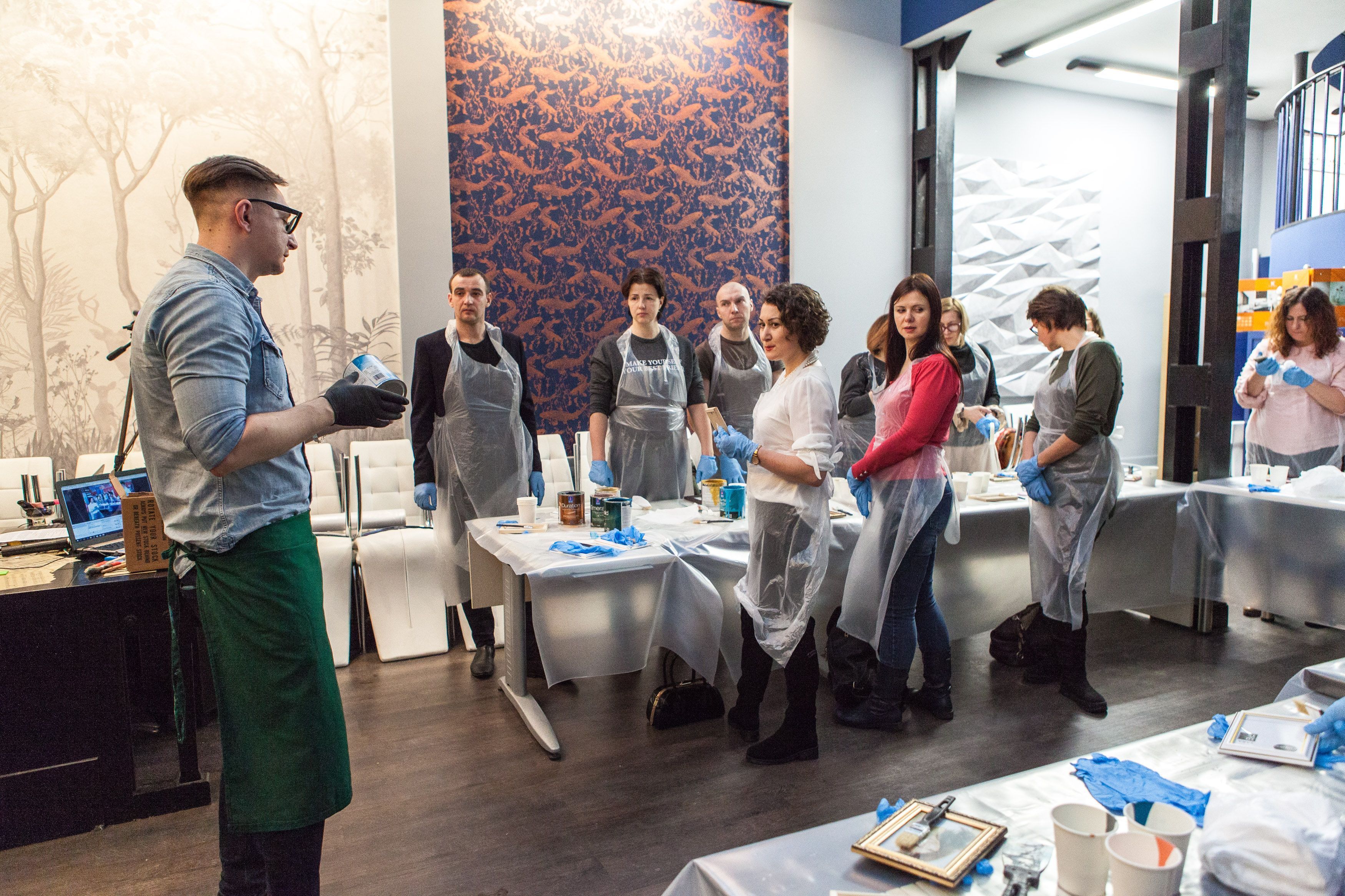 Творческие мастер-классы стали хорошей «фишкой» дизайн-лектория. На этот раз участники преображали предметы декора в авторские штучки при помощи красок Sherwin-Williams Duration, Emerald и All Surfaces Enamel.