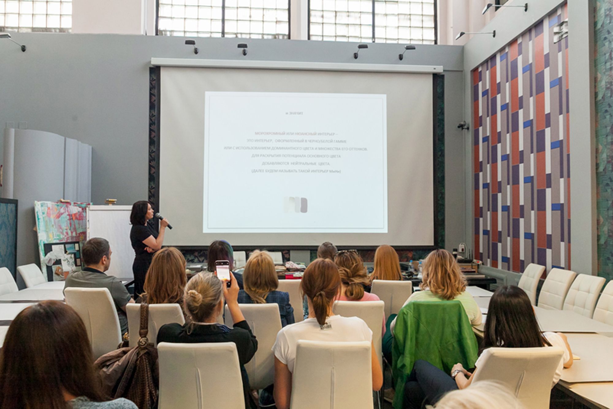 Лекционную часть мастер-класса Тина посвятила информации о нюансных интерьерах, их особенностях, правилах и приемах их создания. Участники мероприятия узнали, как работать над сложными пространствами, какие проблемы могут возникнуть при создании нюансного интерьера и как их решить. Тина продемонстрировала выразительные примеры правильного сочетания фактур и оттенков.