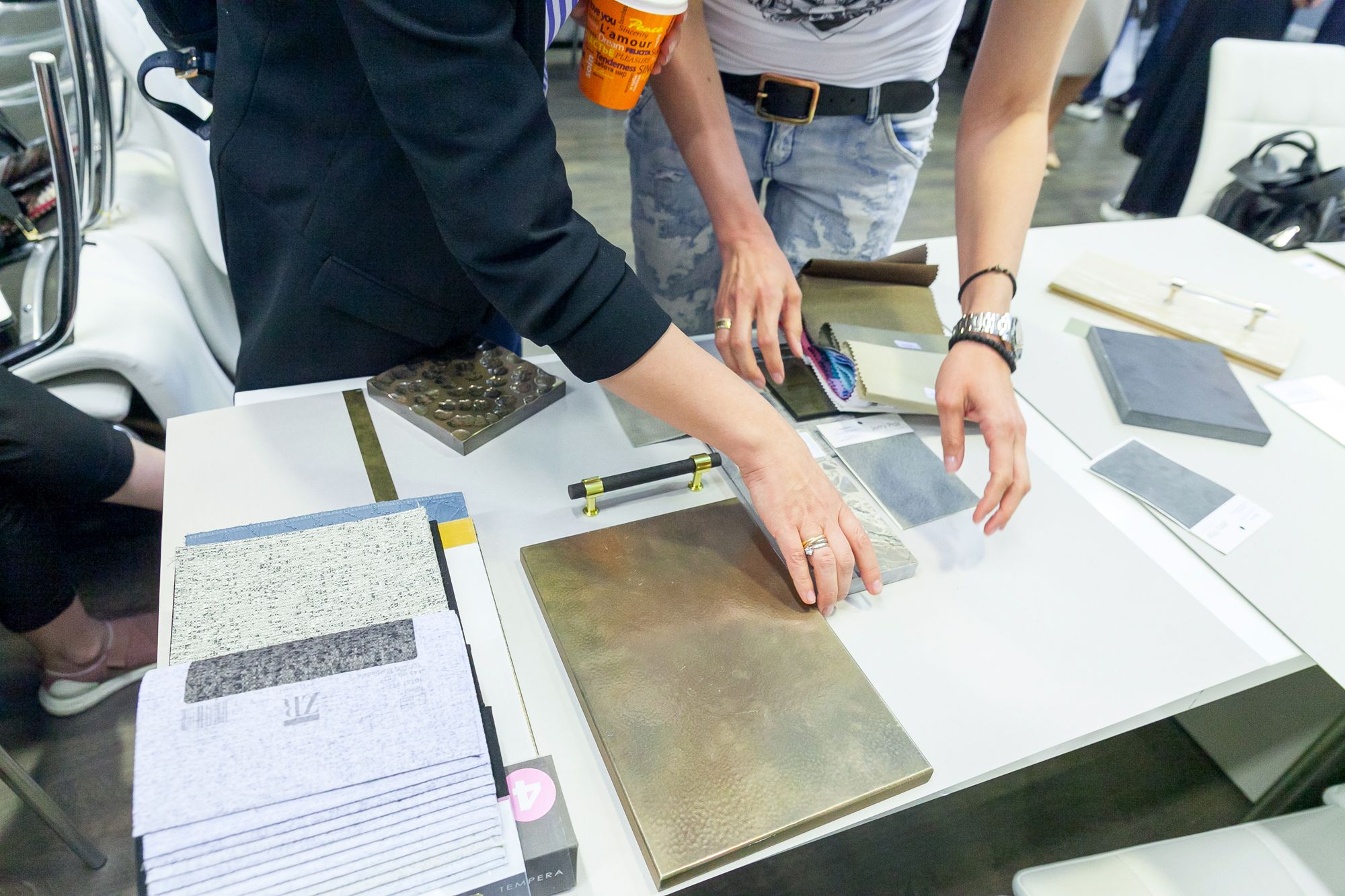 На практической части под руководством Тины каждый участник учился собирать из различных декоративных материалов цвето-фактурные борды, которые помогут в будущем представлять свою идею заказчикам.