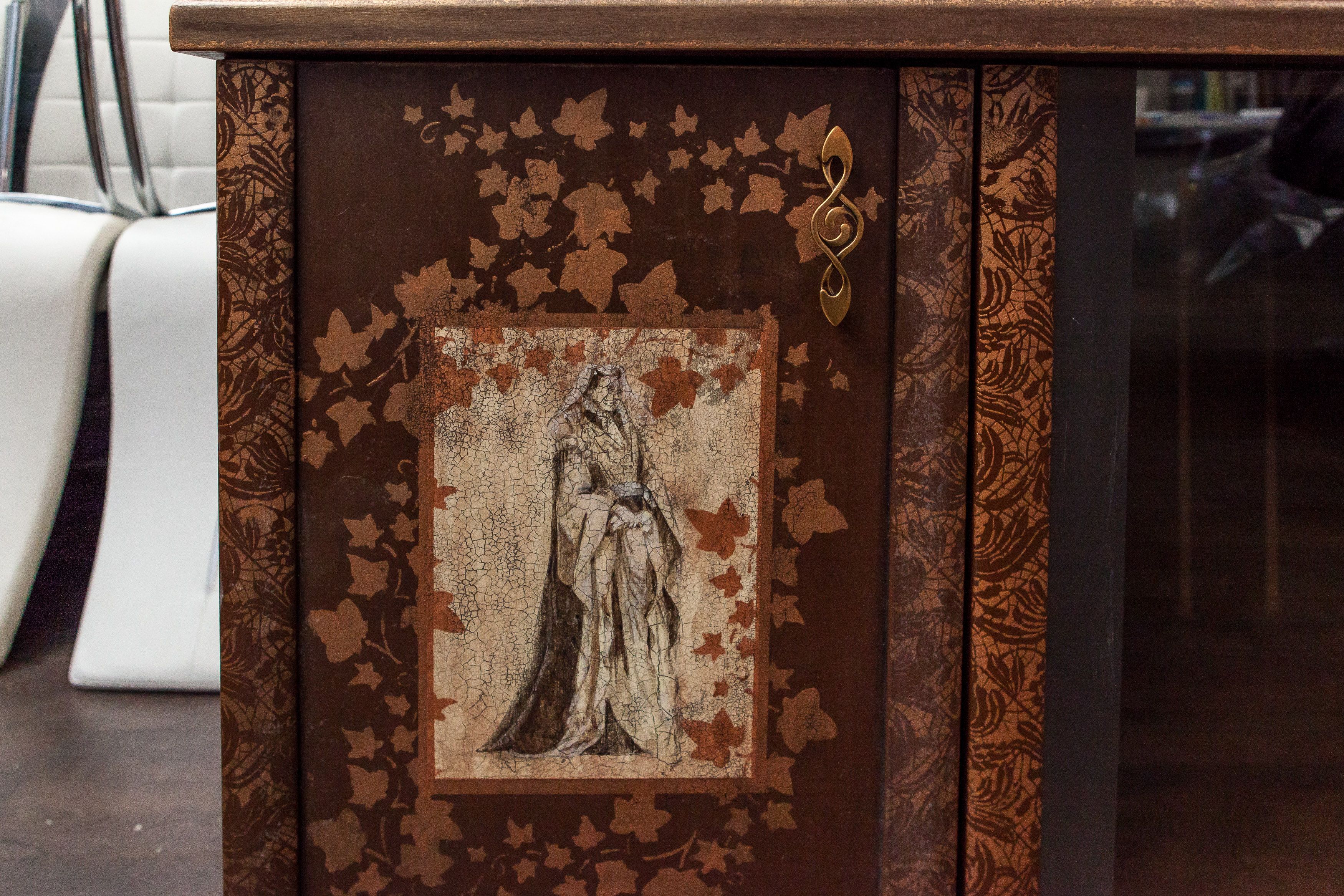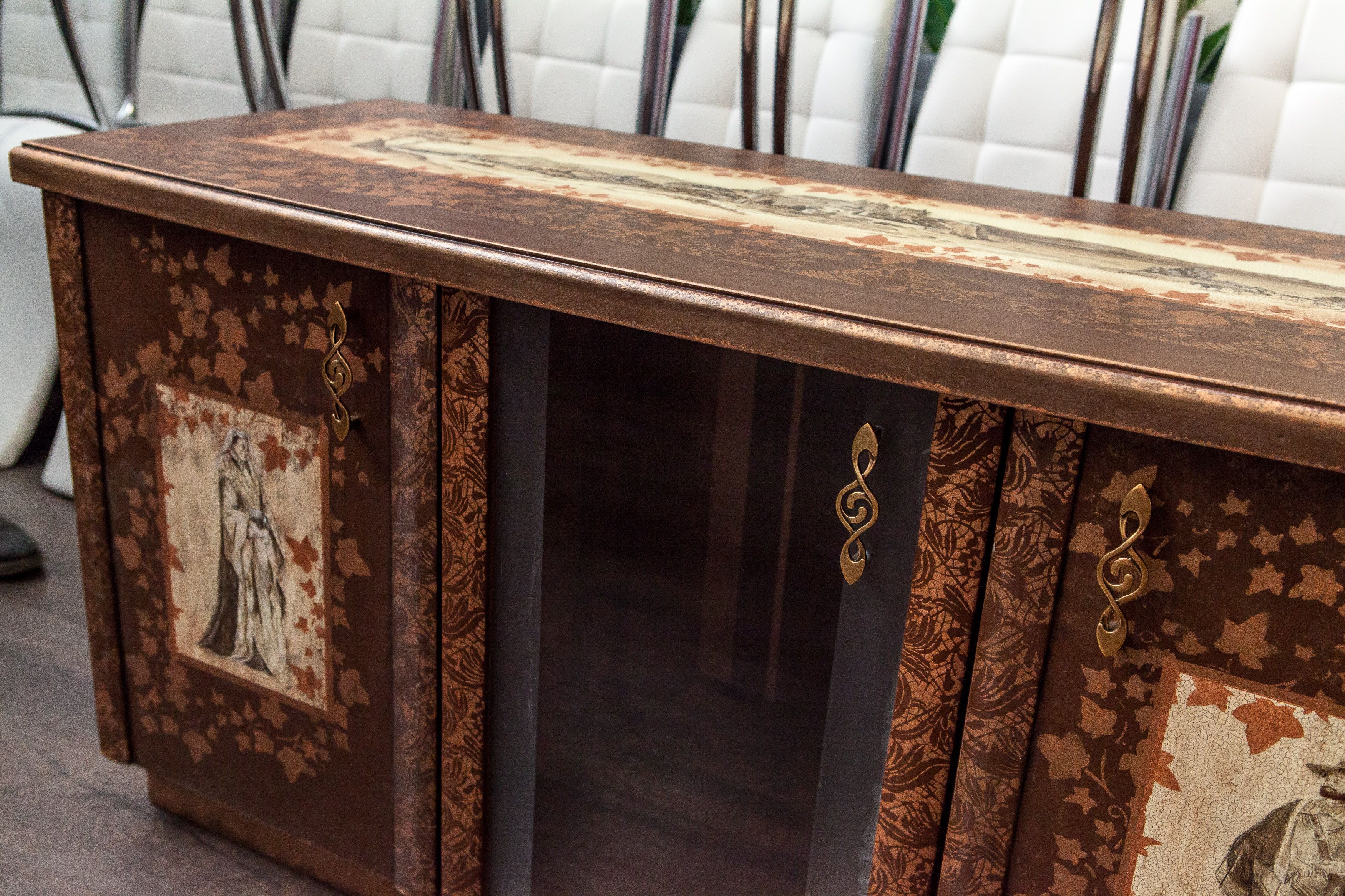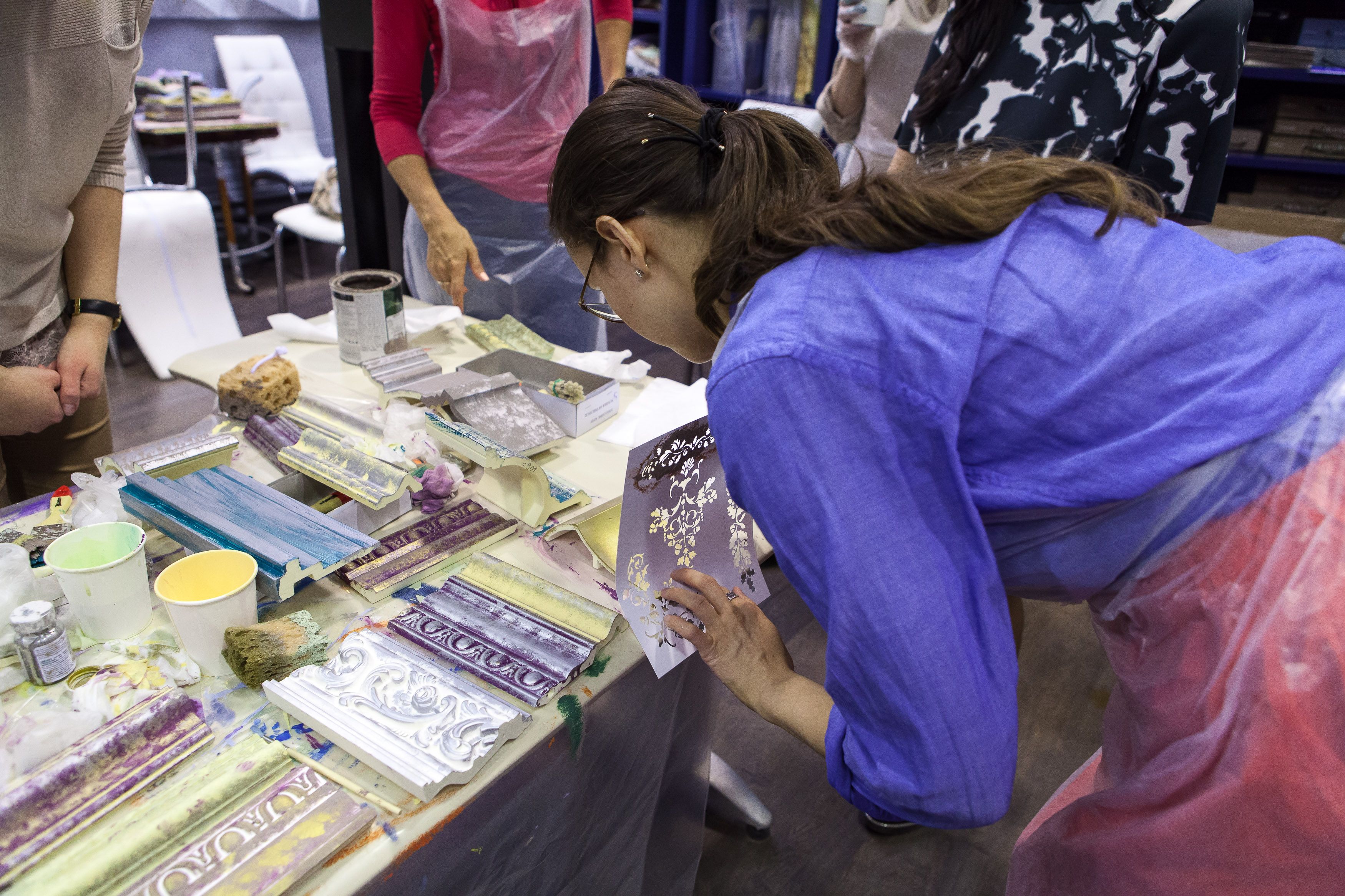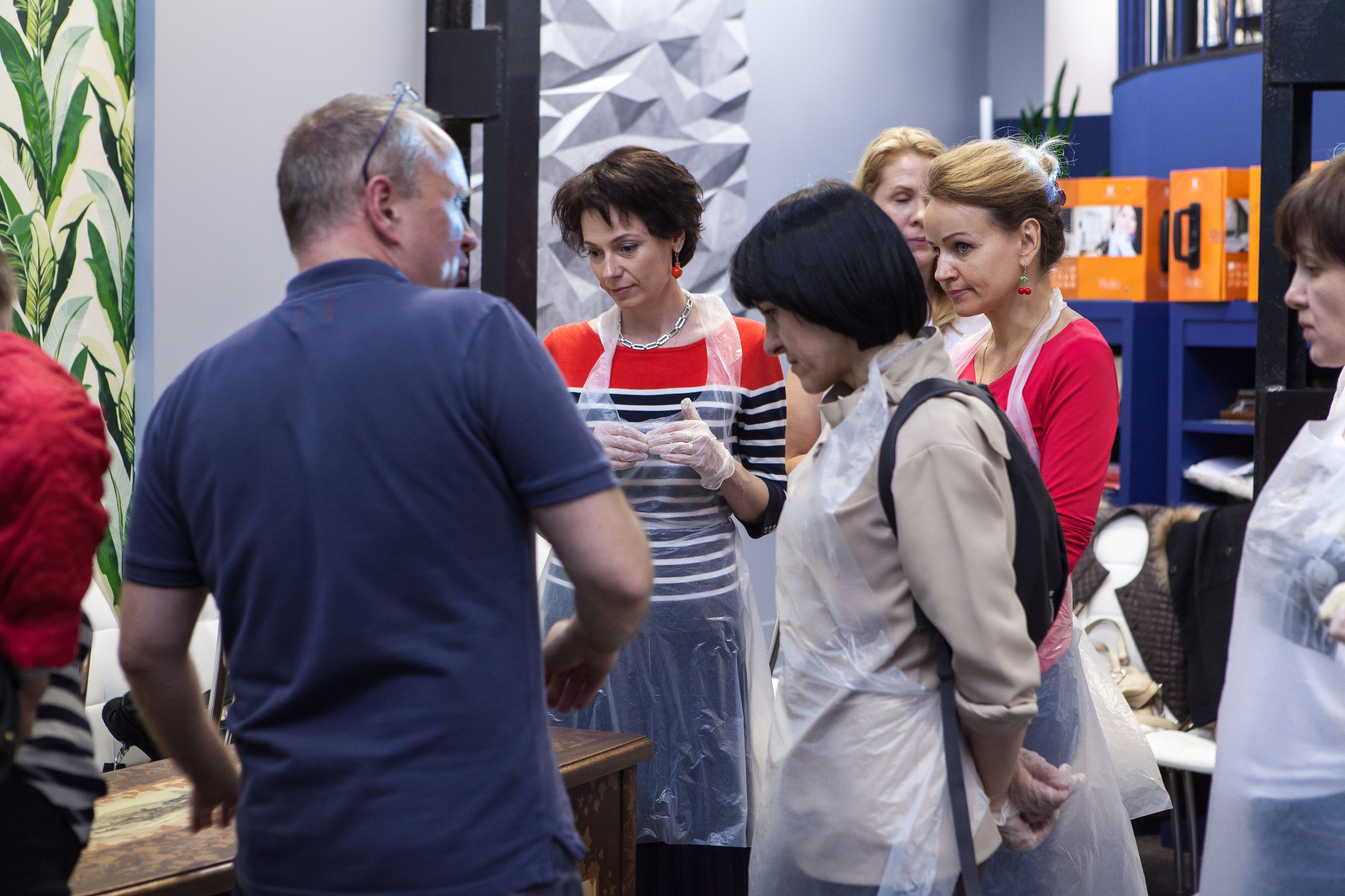 Пока участницы мастер-класса с гордостью демонстрировали собственноручно выполненные образцы, Михаил подготовил еще один сюрприз: рассказ о декорировании мебели.