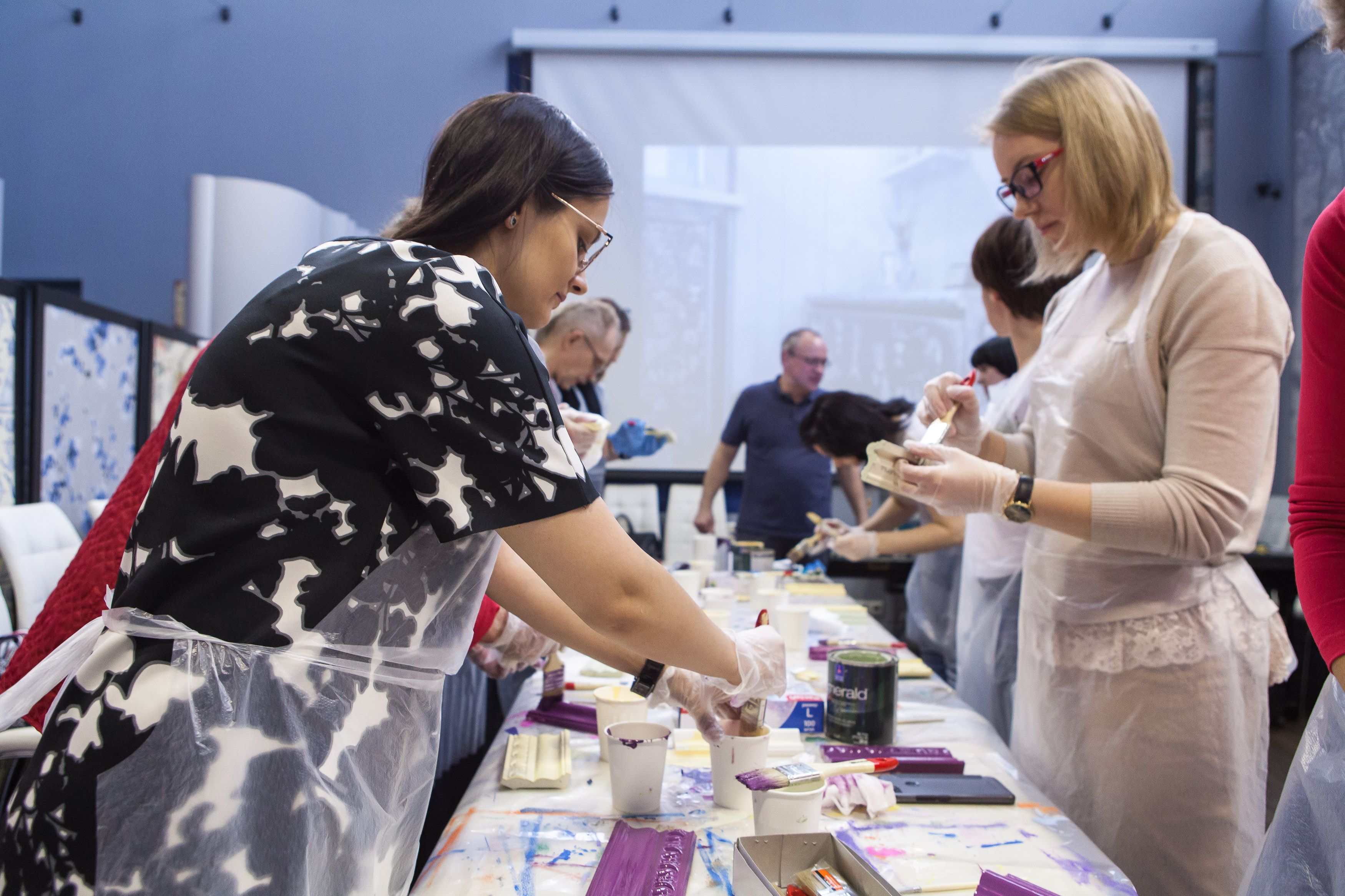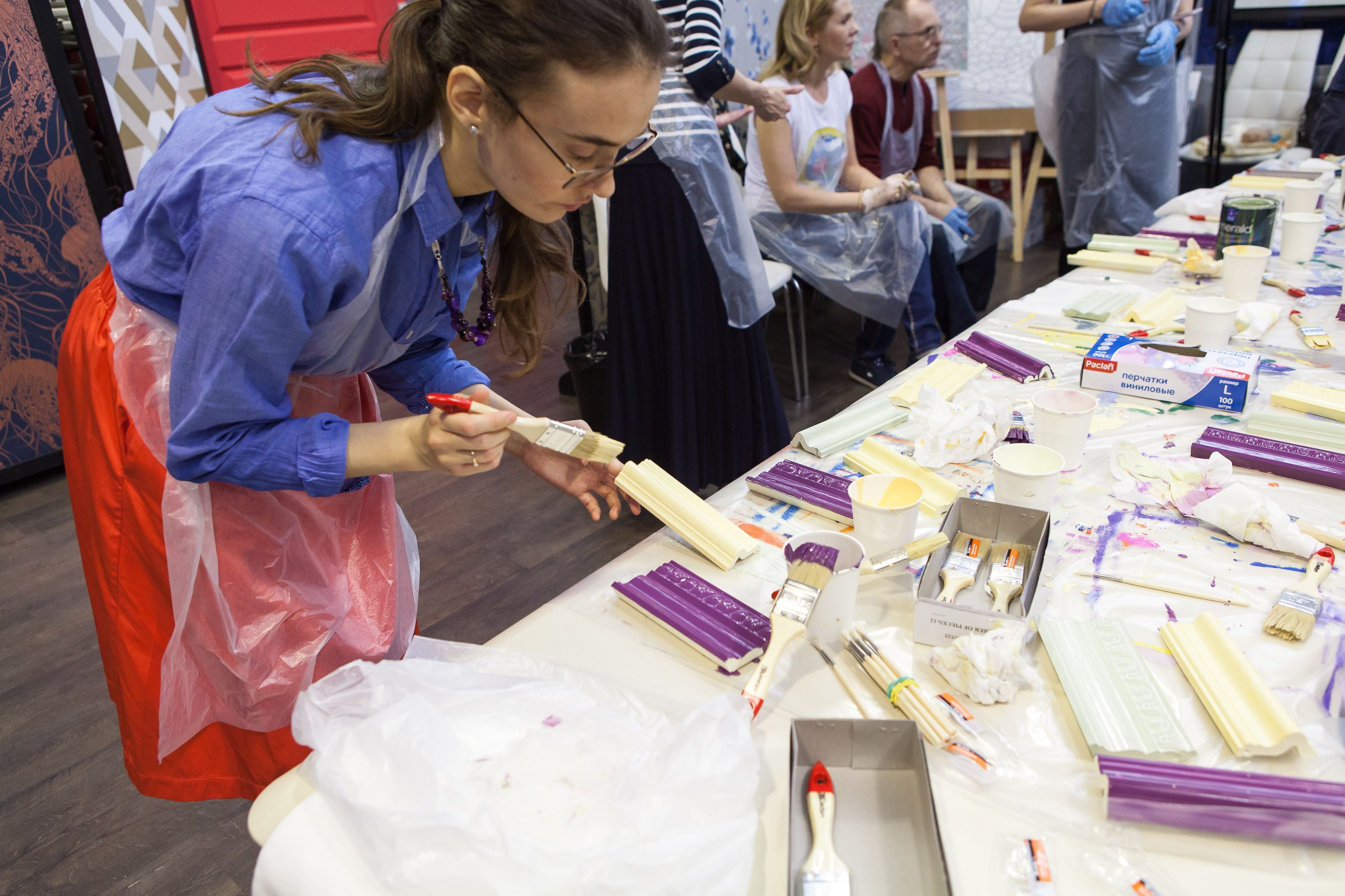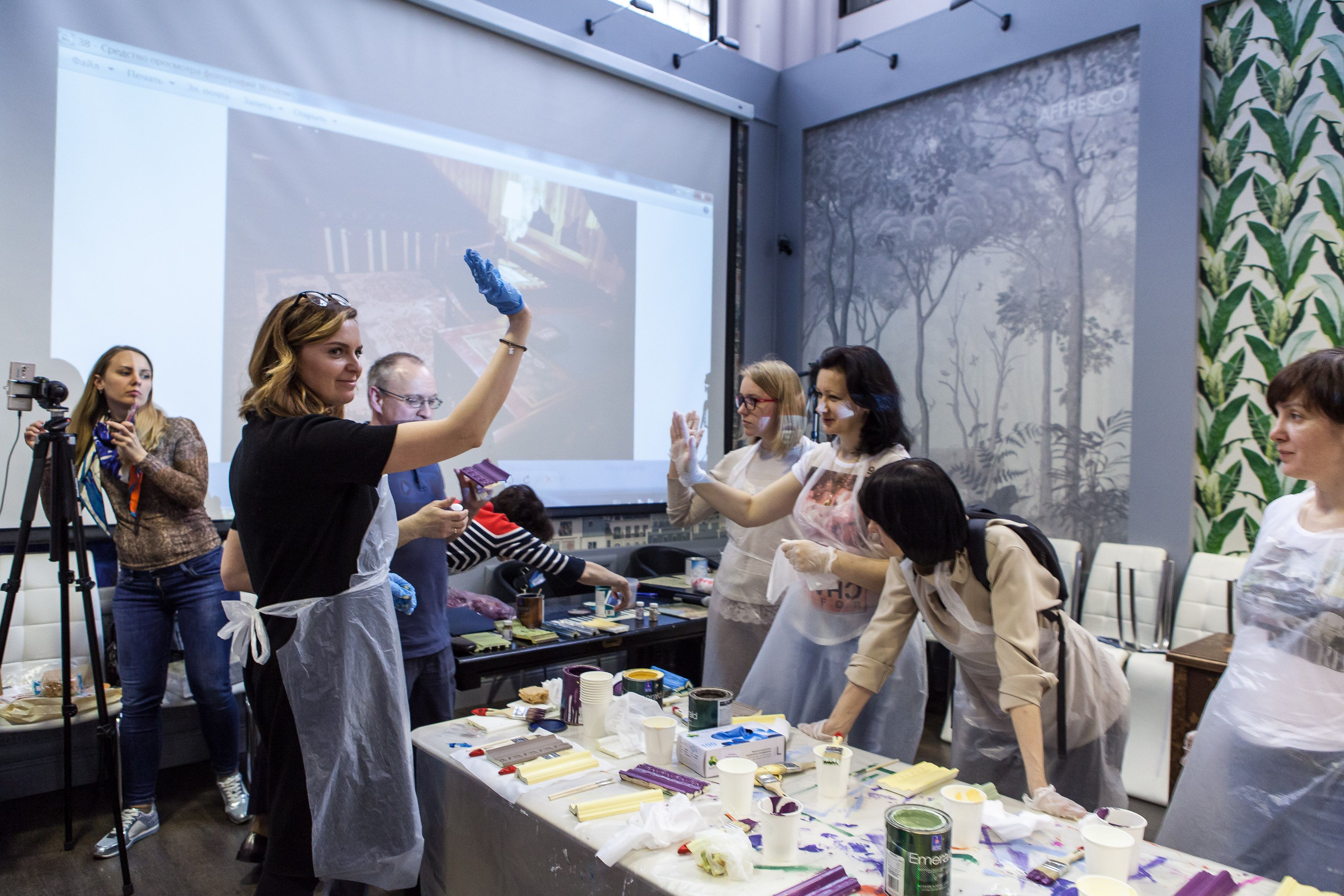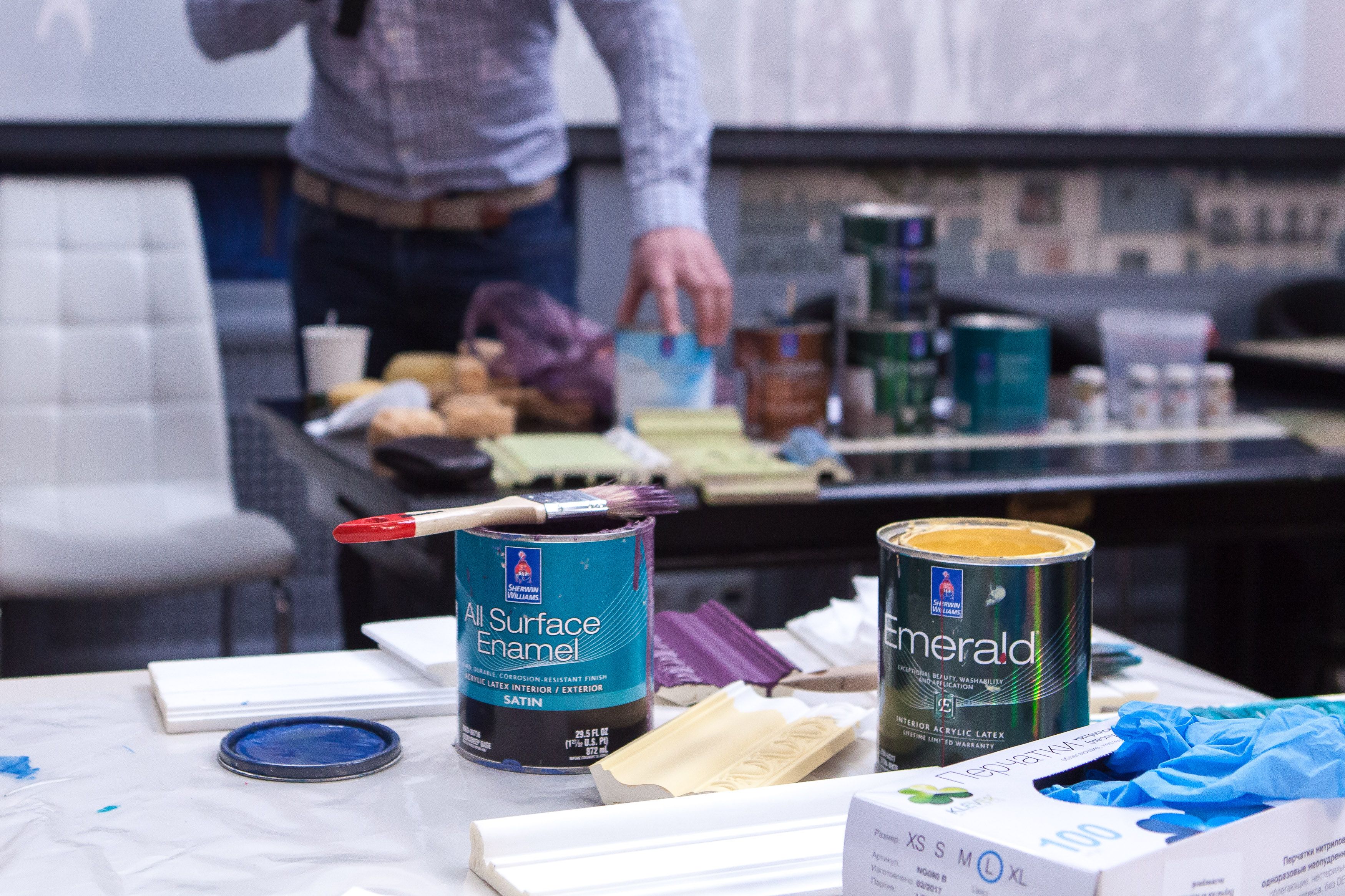 Декоратор и директор по развитию монументально-художественного центра «Вифания» провел в Центре Дизайна Мануфактура 5 мастер-класс по декорированию красками Sherwin-Williams.