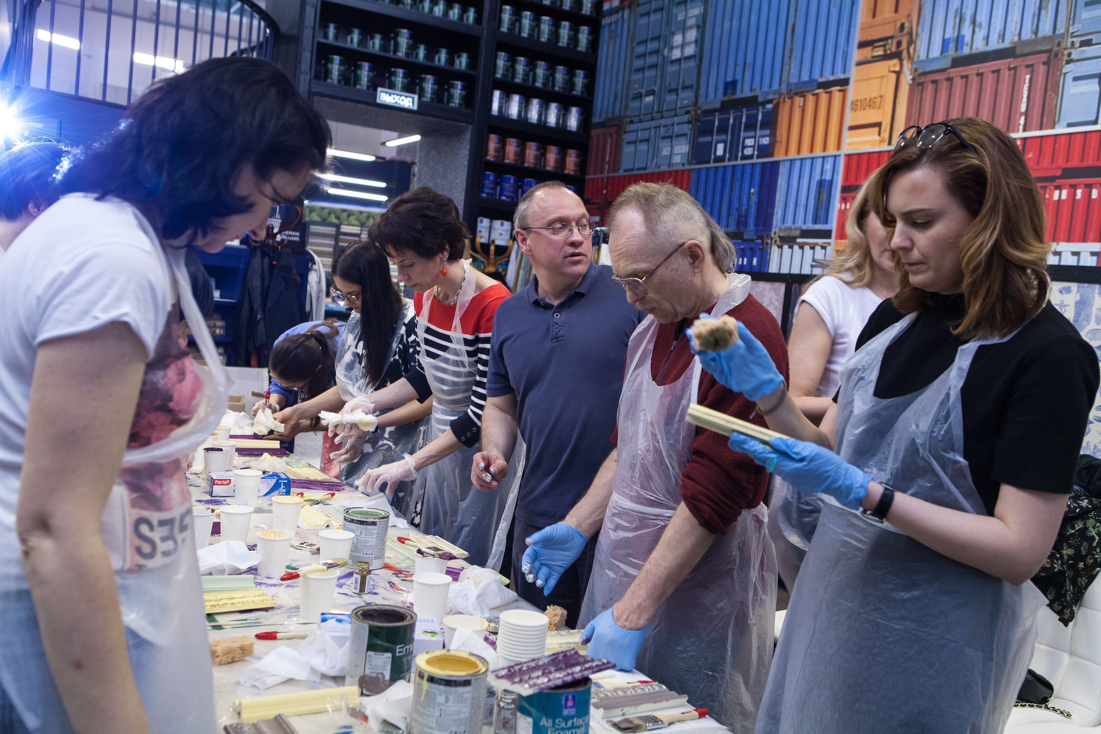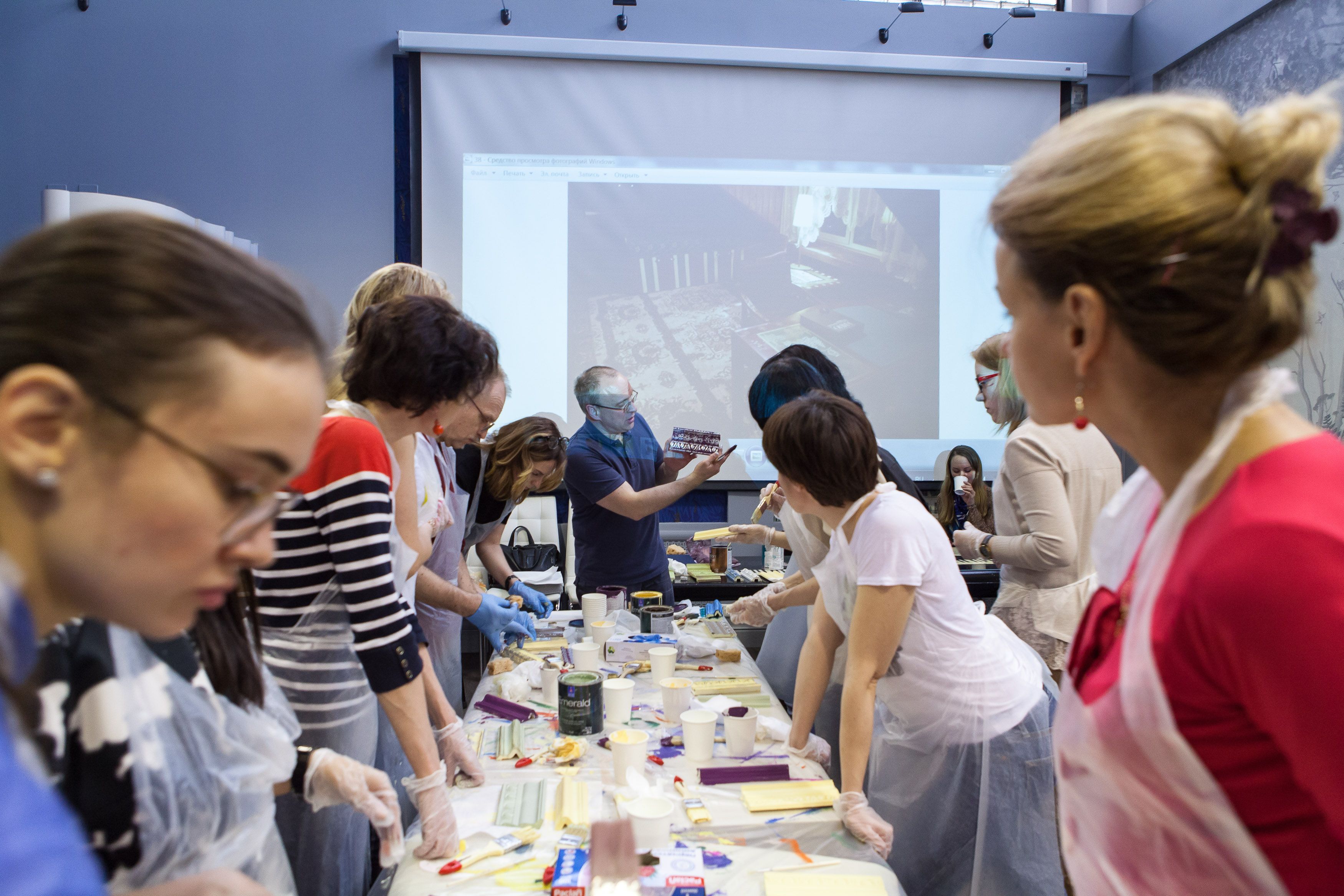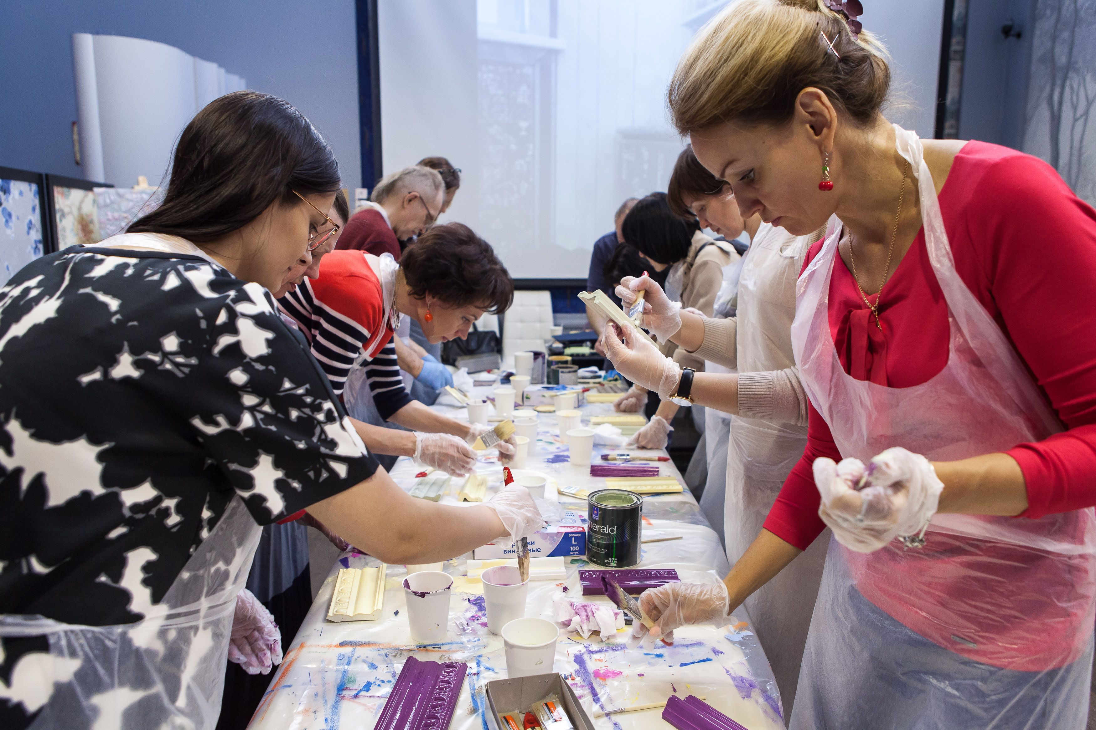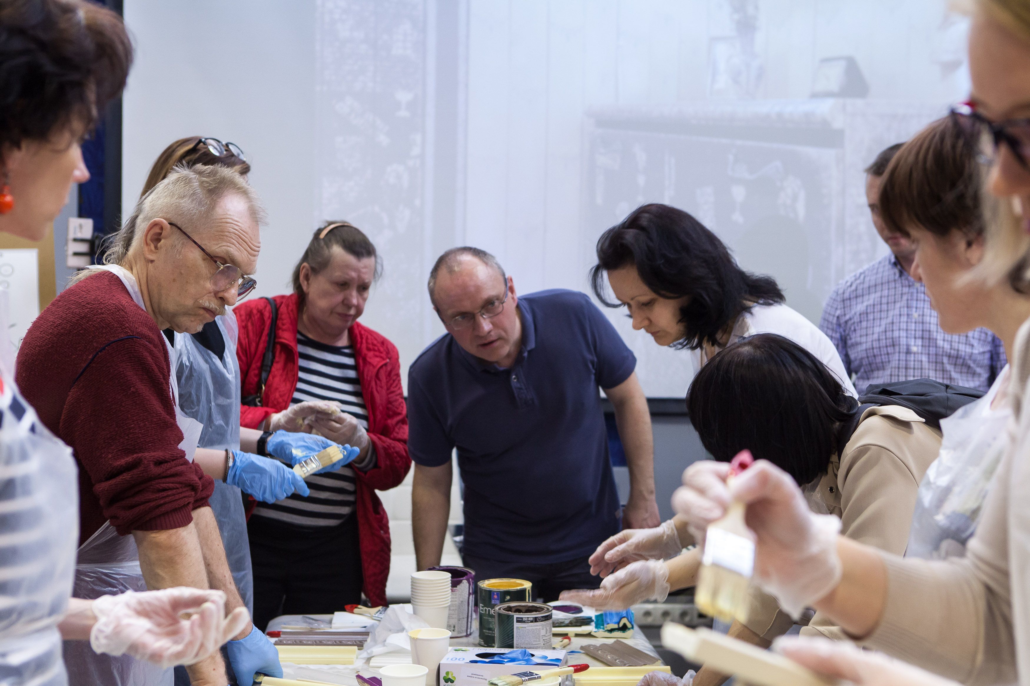 Декоратор и директор по развитию монументально-художественного центра «Вифания» провел в Центре Дизайна Мануфактура 5 мастер-класс по декорированию красками Sherwin-Williams.